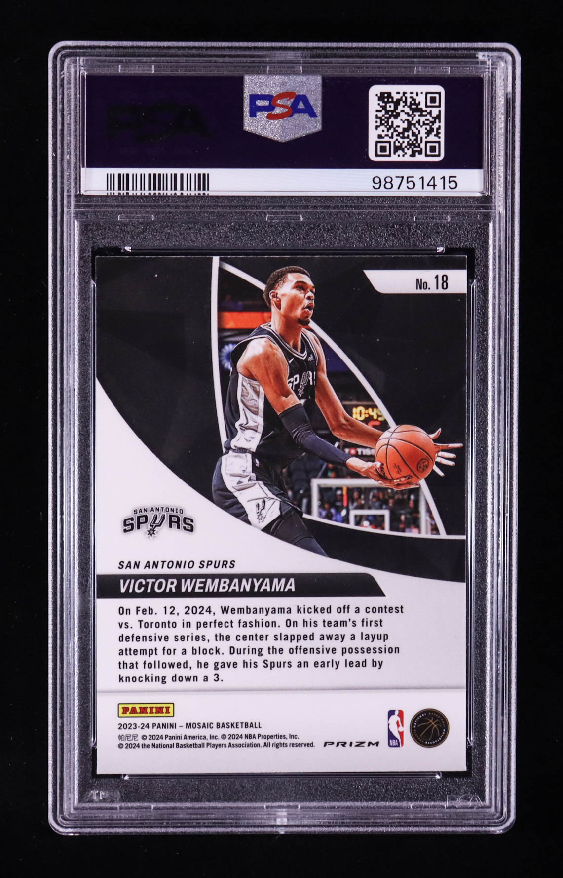 Victor Wembanyama 2023-24 Panini Mosaic Elevate Mosaic Green #18 RC (PSA 10)