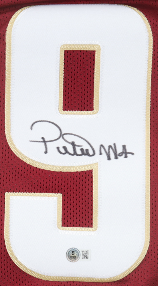 Custom jersey. Everything is sewn on, size XL. Has been hand-signed by Peter Warrick.