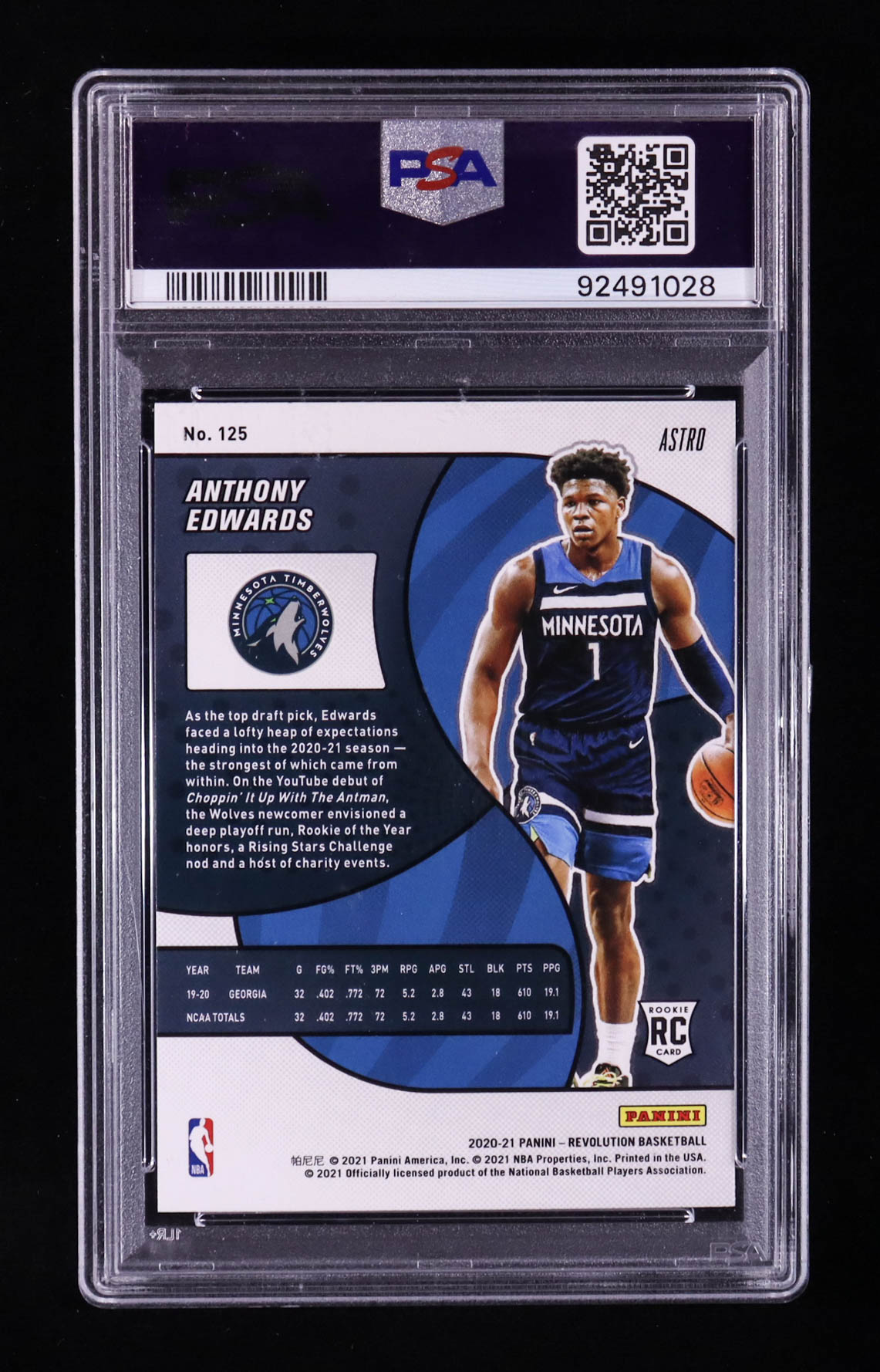 Anthony Edwards 2020-21 Panini Revolution Astro #125 RC (PSA 10)