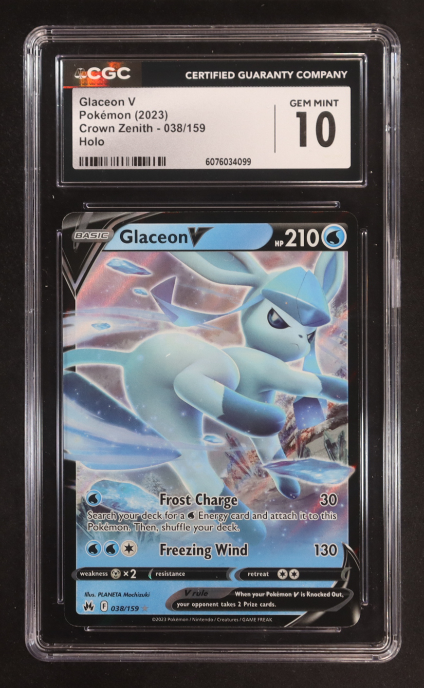 Glaceon V 2023 Pokemon Sword and Shield Crown Zenith #038 (CGC 10)