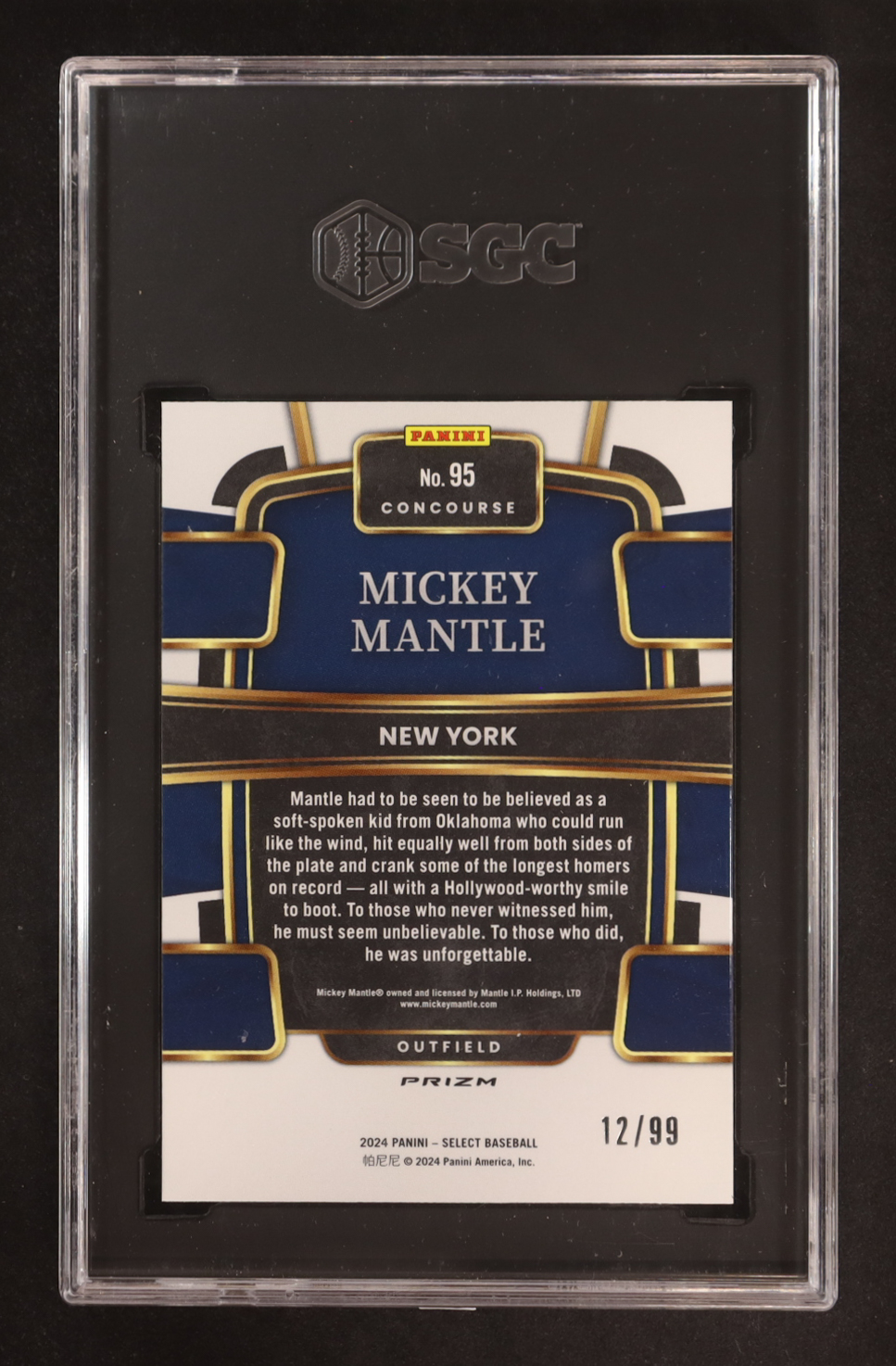 Mickey Mantle 2024 Select Prizms White #95 #12/99 (SGC 10)