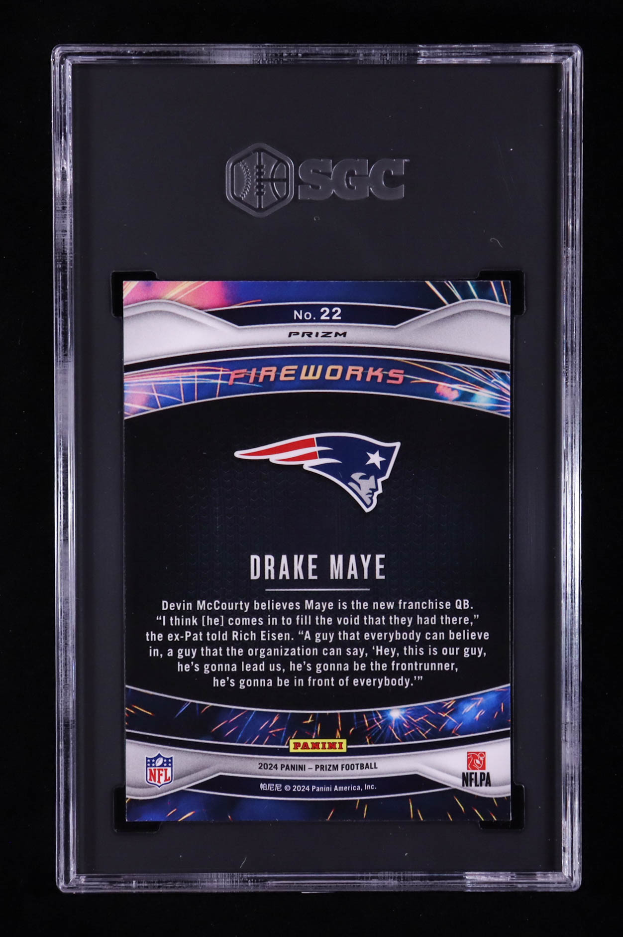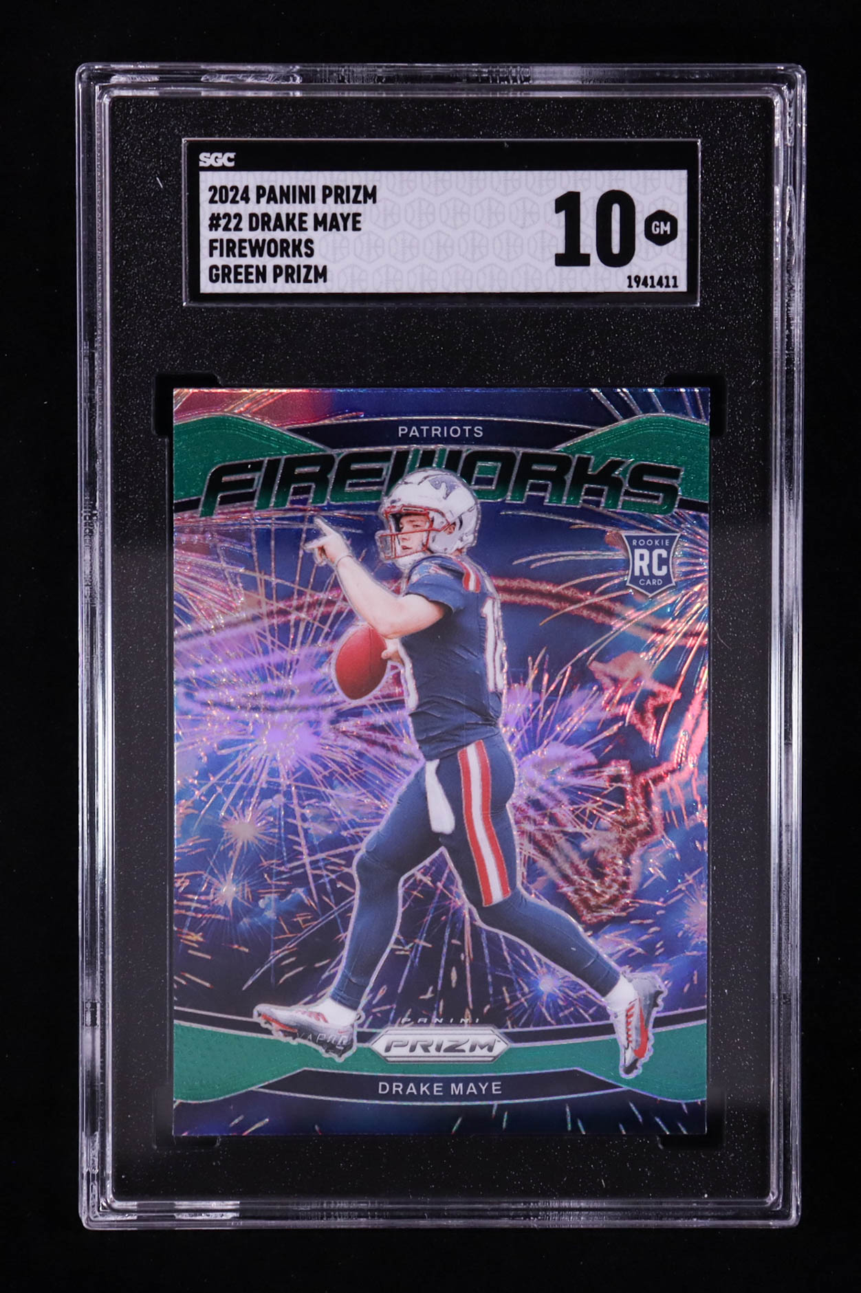 Drake Maye 2024 Panini Prizm Fireworks Prizms Green #22 RC (SGC 10)