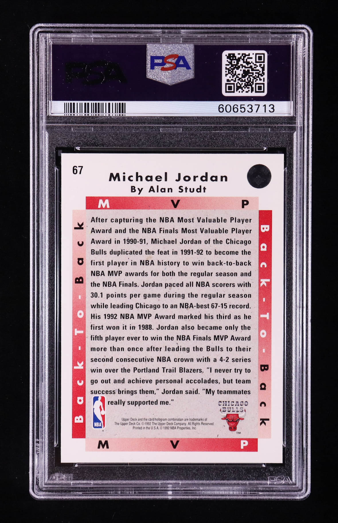Michael Jordan 1992-93 Upper Deck #67 MVP (PSA 10)