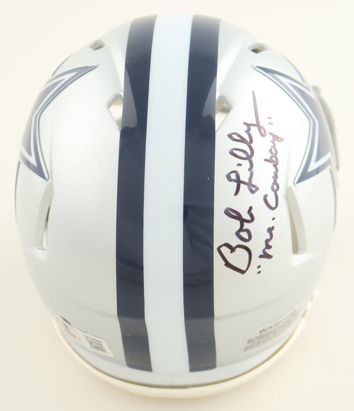 Riddell Dallas Cowboys Speed mini helmet. Hand-signed and inscribed by Bob Lilly (HOF).
