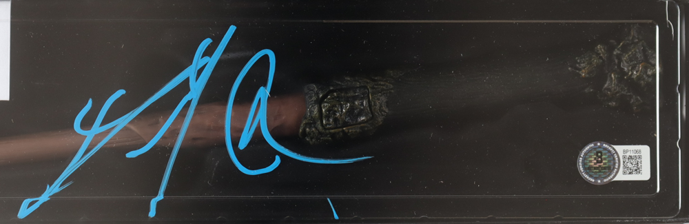Toy wand has been hand-signed on the original packaging by Daniel Radcliffe. Please note, the signature is smudged.
