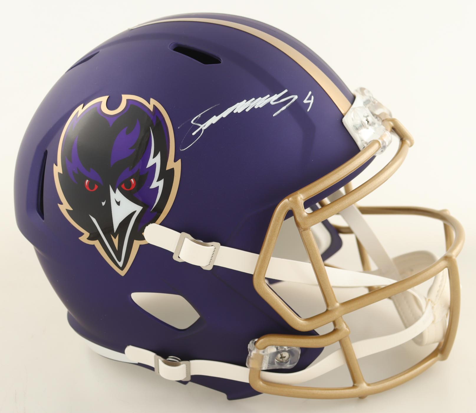 Zay Flowers Signed Ravens Full-Size Alternate Speed Helmet (Beckett)