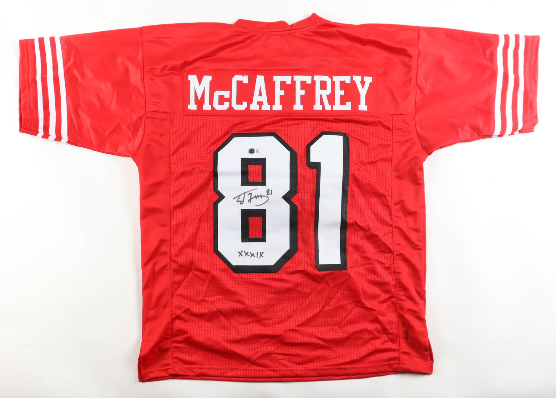 Custom jersey with everything sewn on, size XL. Hand-signed and inscribed by Ed McCaffrey.
