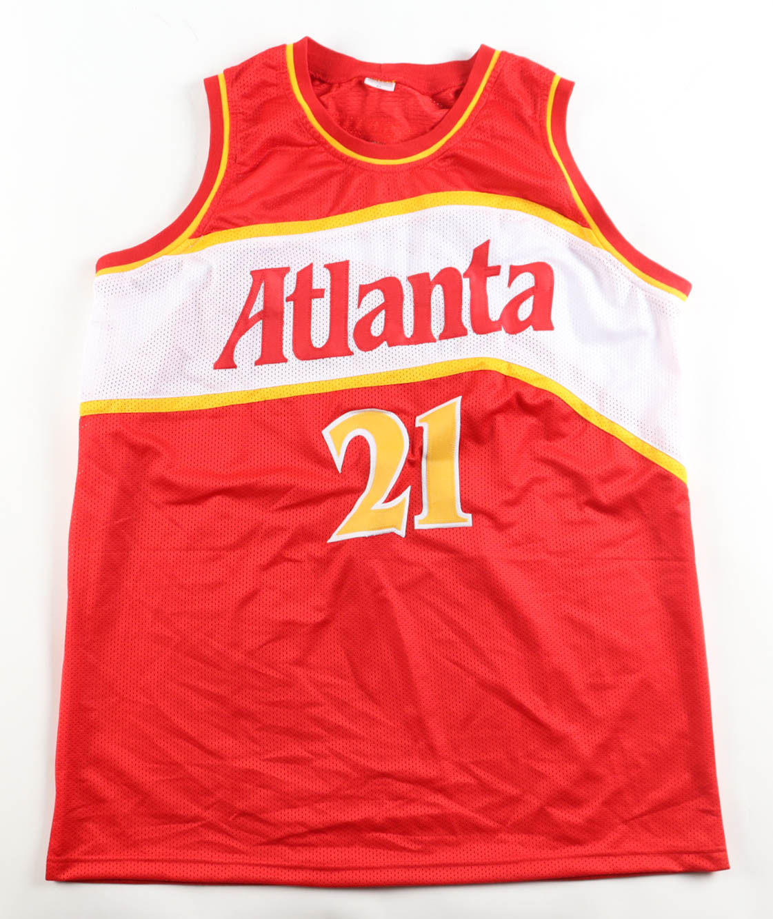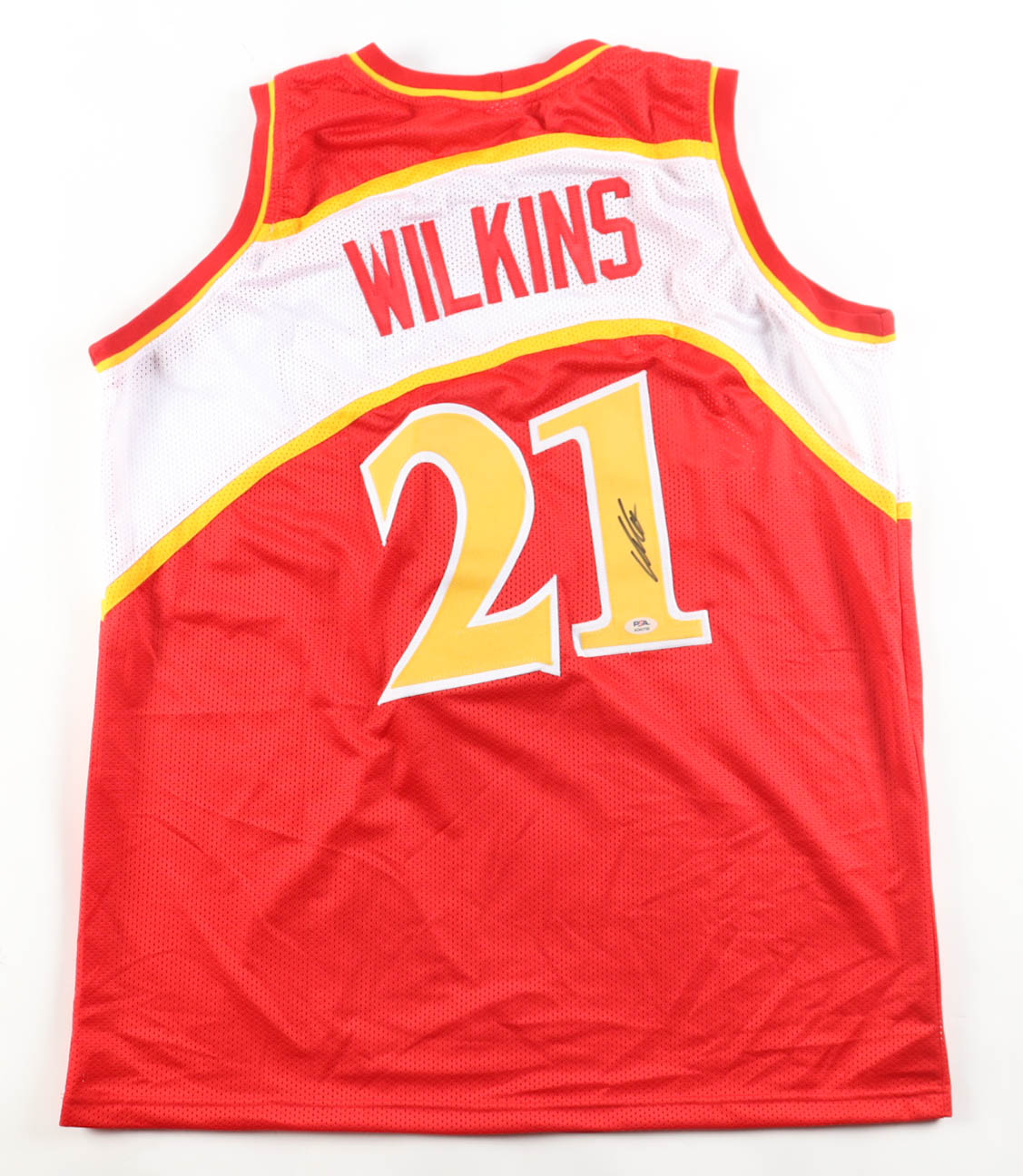 Custom jersey with everything sewn on, size XL. Hand-signed by Dominique Wilkins (HOF).
