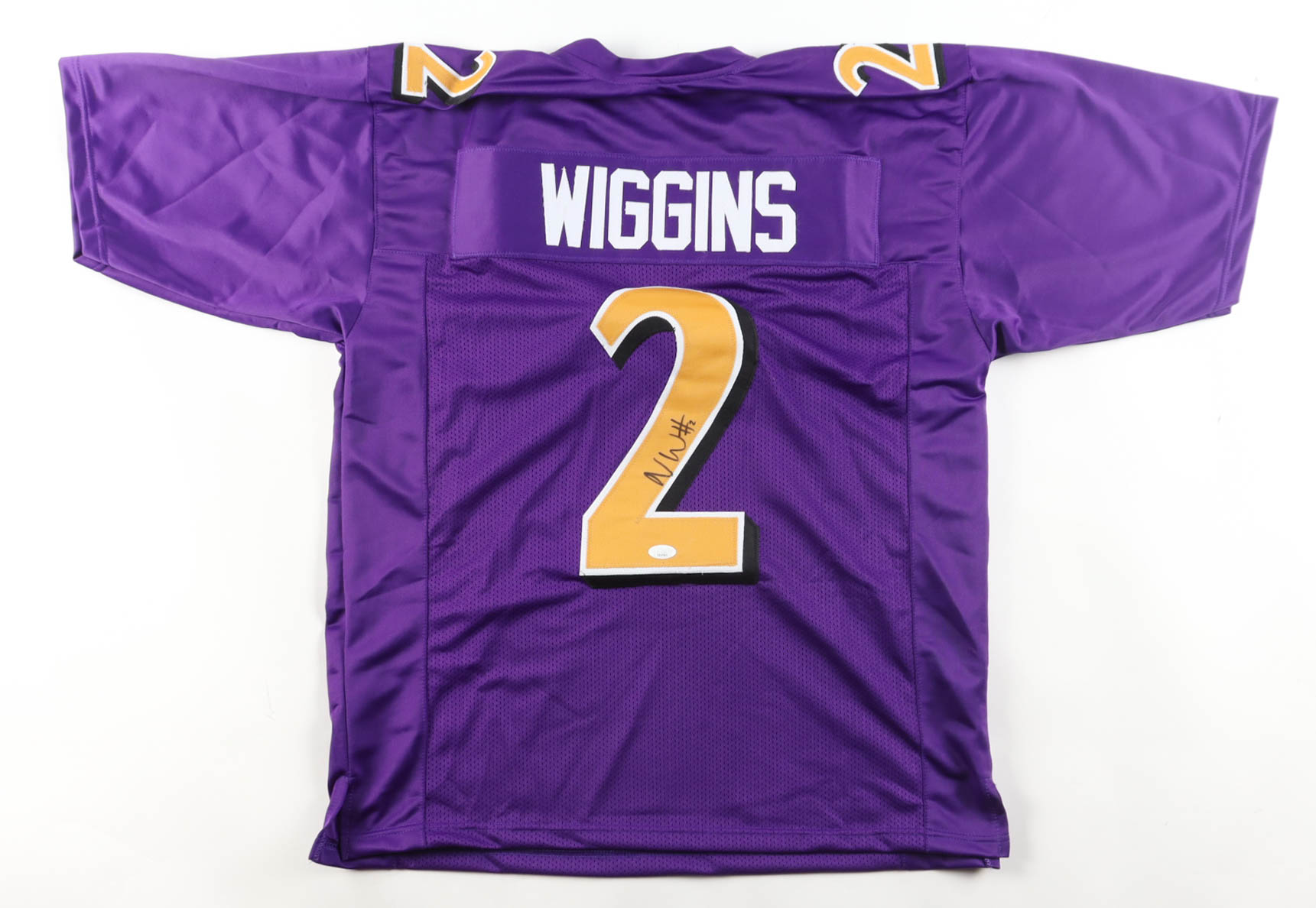 Custom jersey with everything sewn on, size XL. Hand-signed by Nate Wiggins.