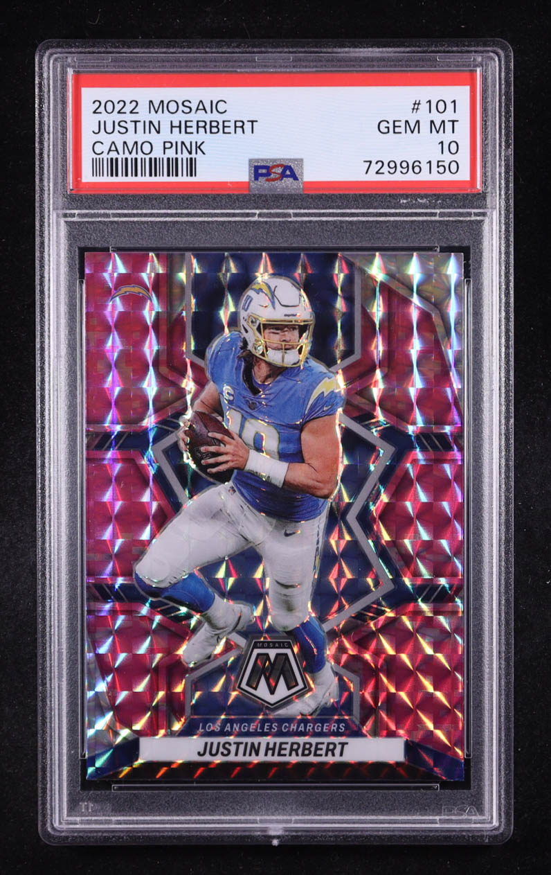 Justin Herbert 2022 Panini Mosaic Mosaic Camo Pink #101 (PSA 10)