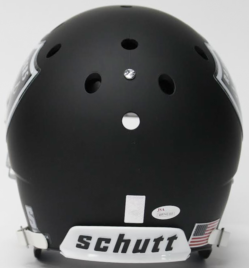Schutt full-size custom matte black replica helmet. Hand-signed in silver paint pen by Bo Jackson.
