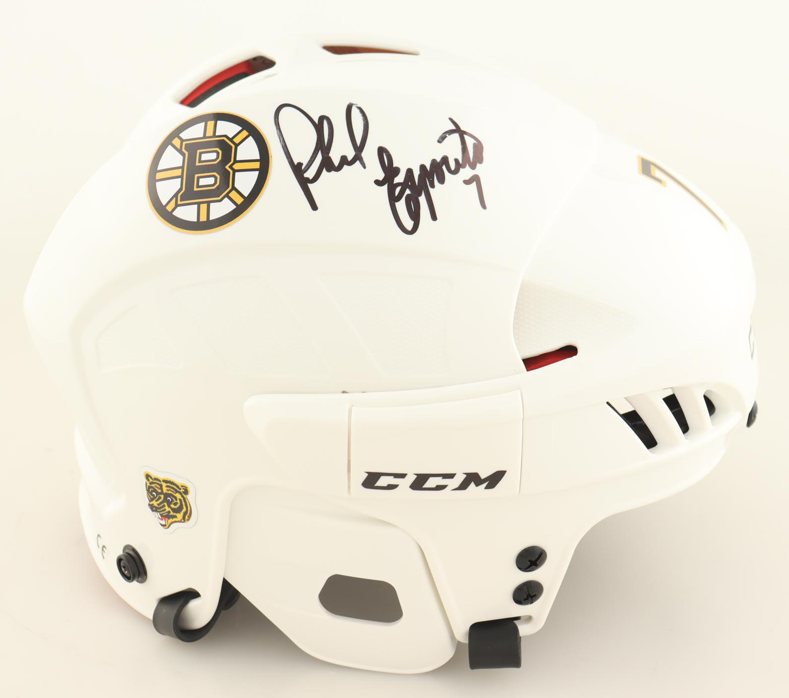 CCM Boston Bruins full-size replica helmet. Hand-signed by Phil Esposito (HOF).