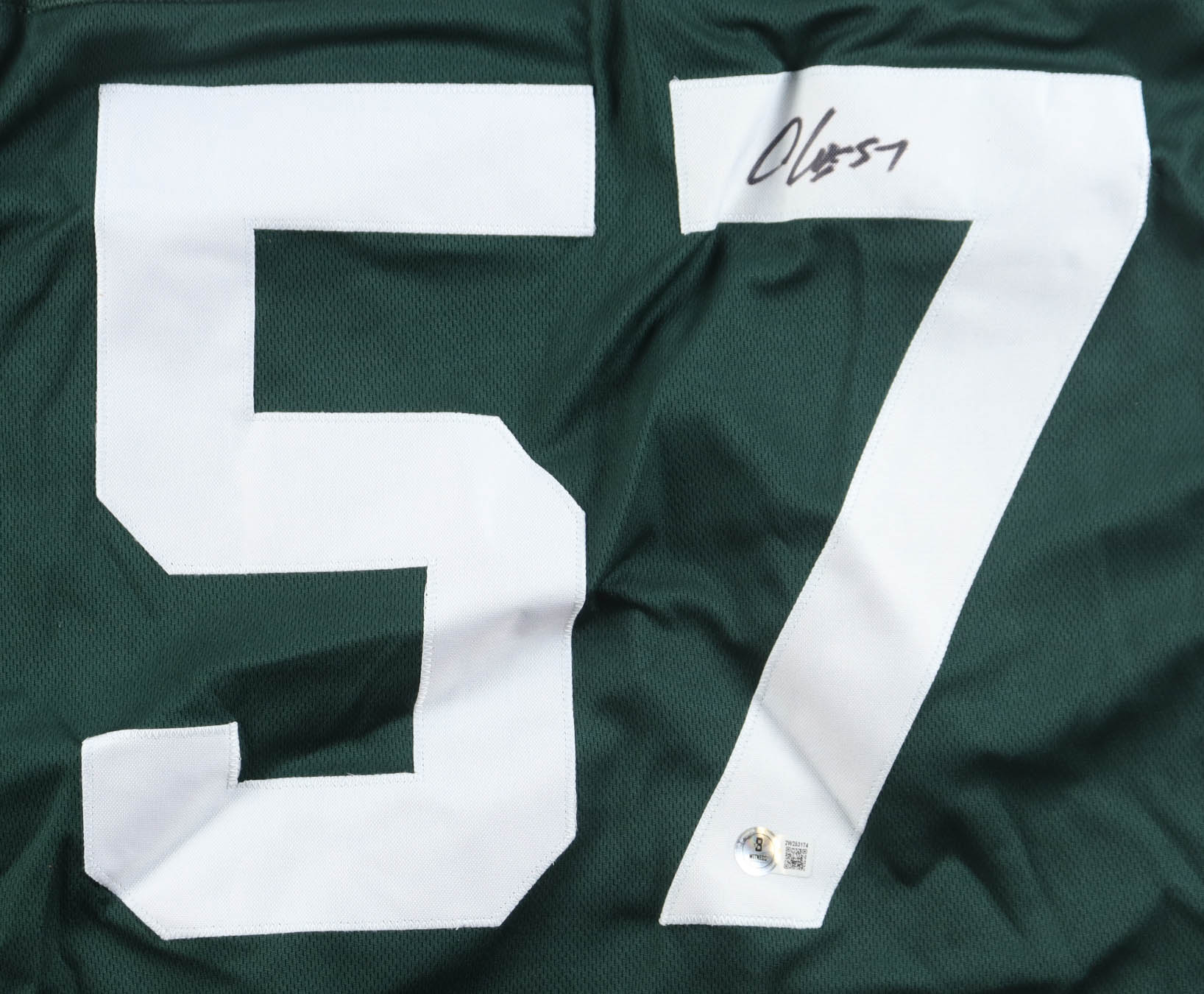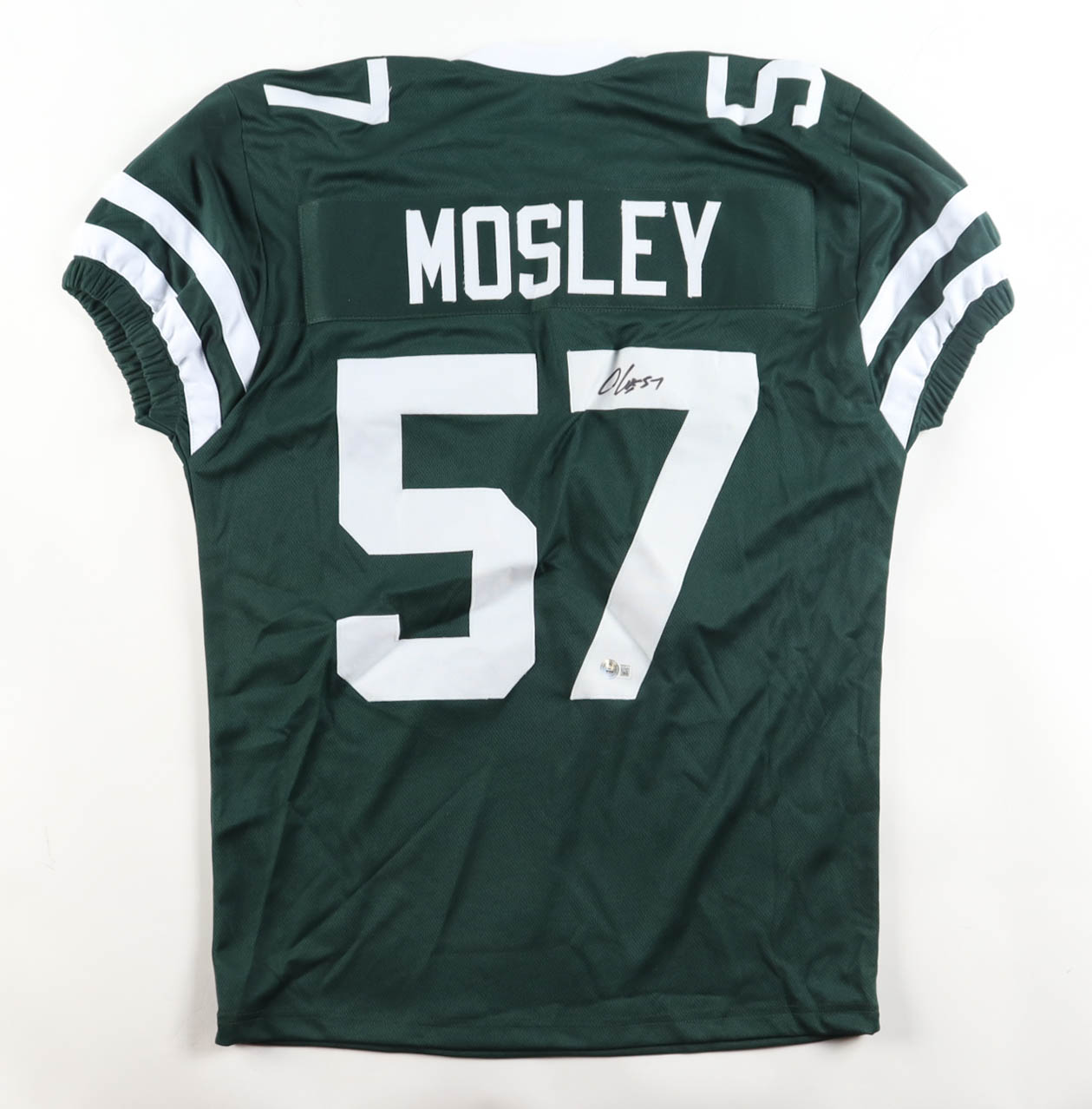 Custom jersey. Everything is sewn on, size XL. Hand-signed by C. J. Mosley.