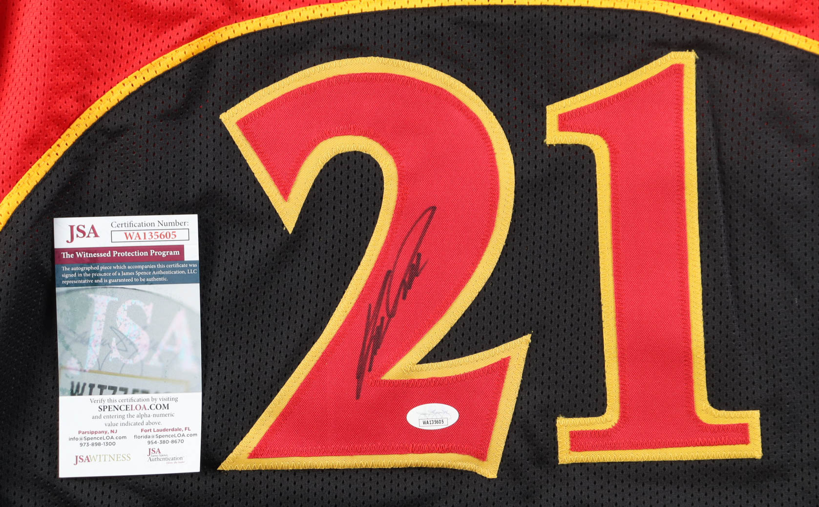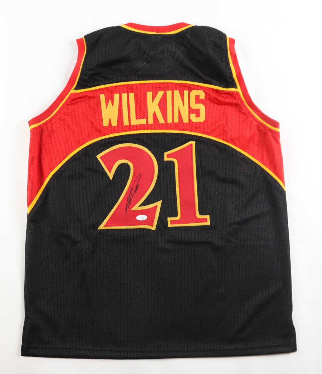Custom jersey with everything sewn on, size XL. Hand-signed by Dominique Wilkins (HOF).