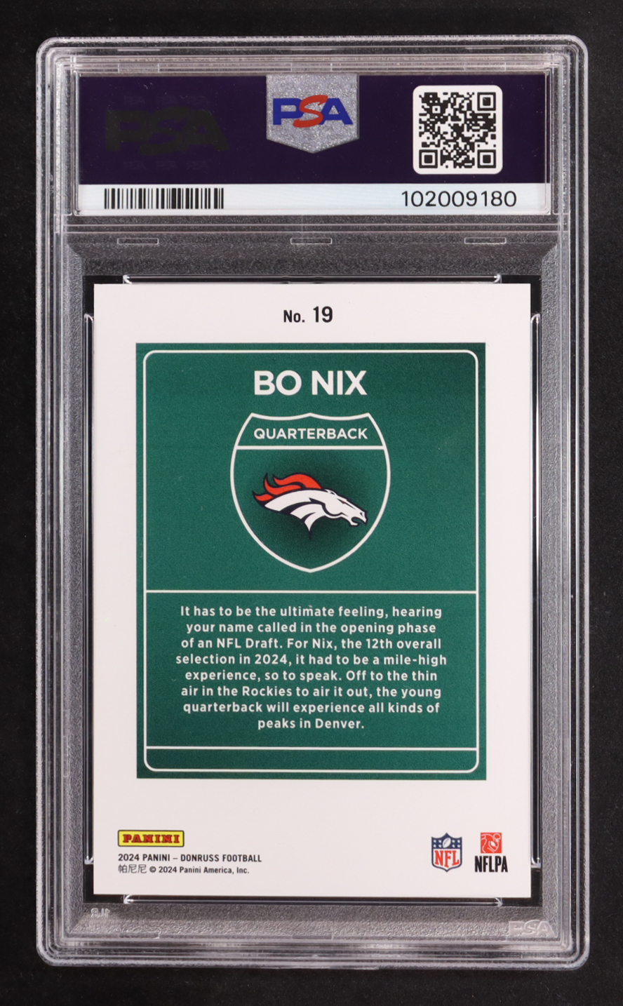 Bo Nix 2024 Donruss Downtown #19 RC (PSA 10)