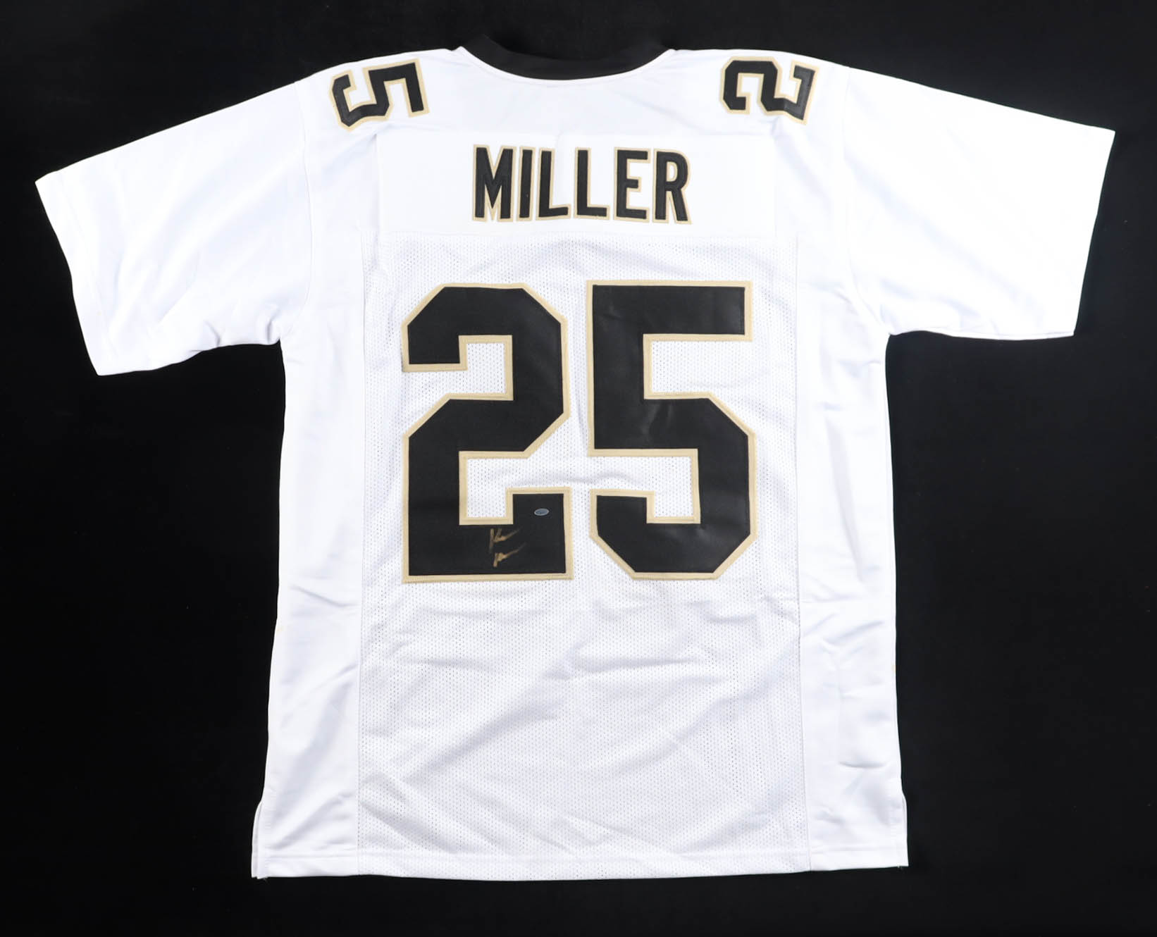 Custom jersey. Everything is sewn on, size XL. Hand-signed by Kendre Miller.
