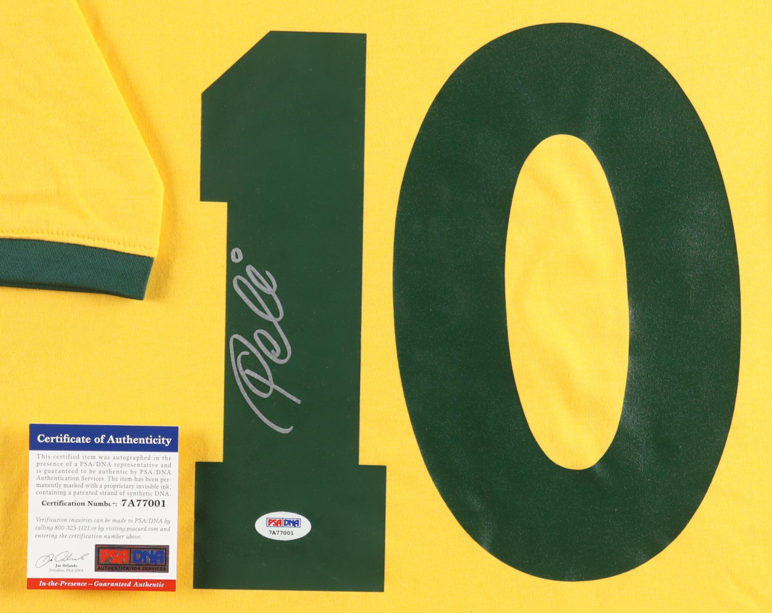 Pele Signed Custom Framed Jersey Display with World Cup Trophy Pin (PSA)
