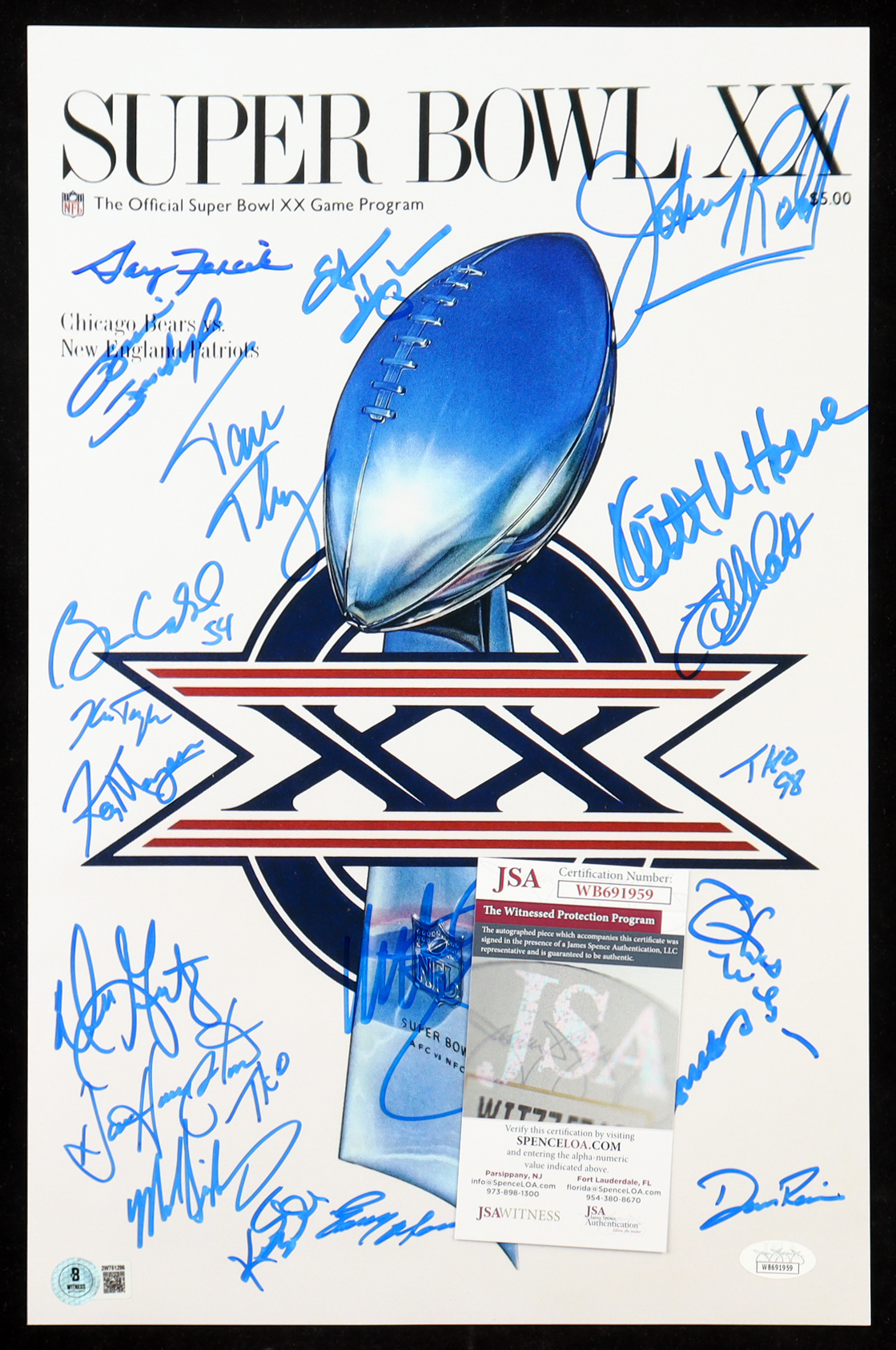 1985 Bears Super Bowl XX 11x17 Photo Team-Signed By (21) with Dan Hampton, Mike Singletary, Tom Thayer, Matt Suhey (Beckett & JSA)