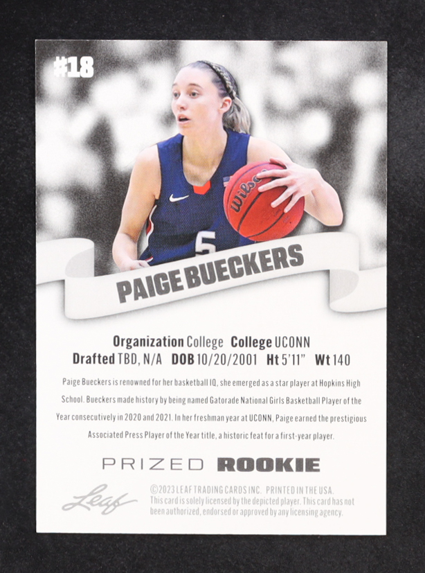 Paige Bueckers 2023 Leaf Special Release Prized Rookie #18 RC