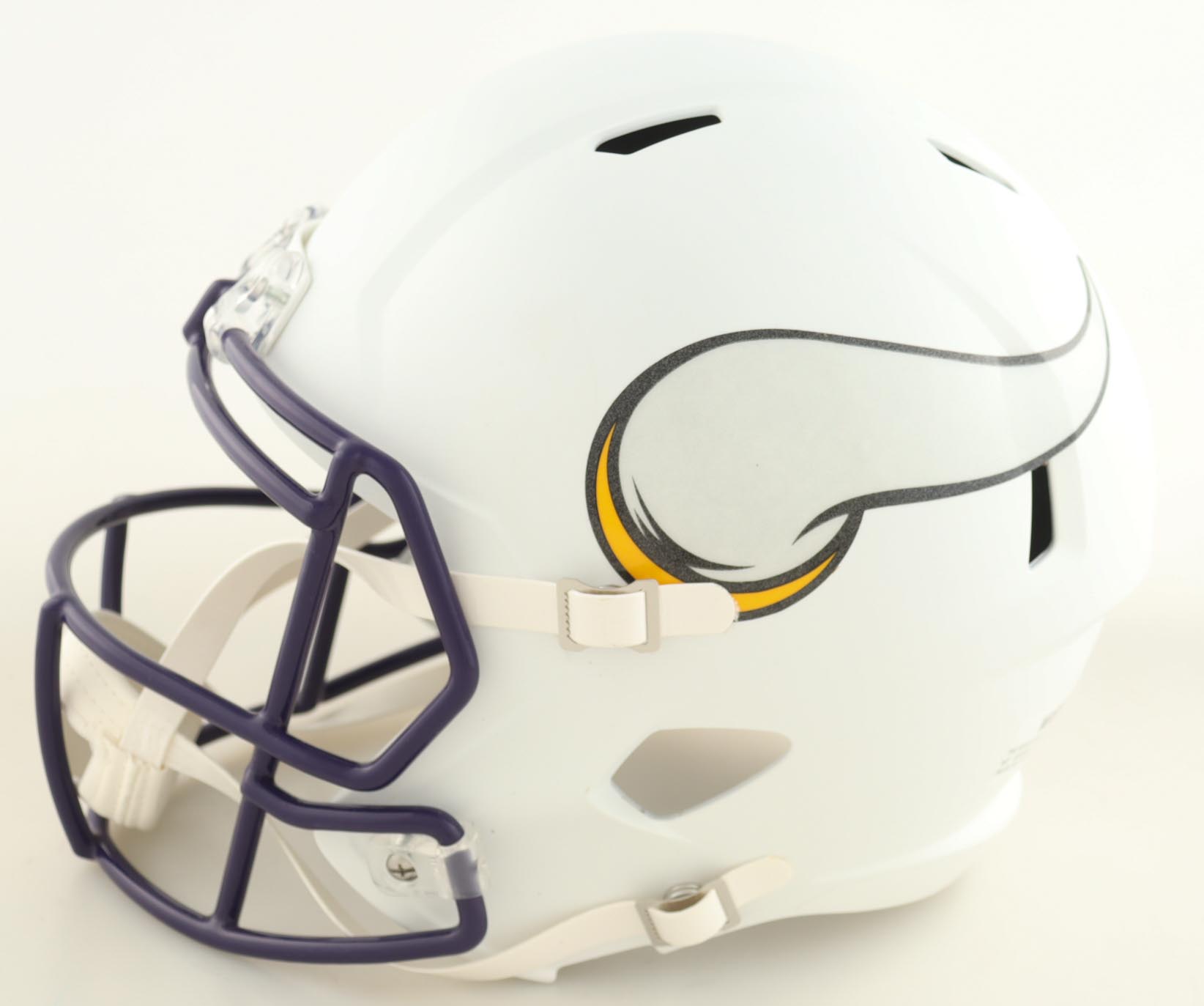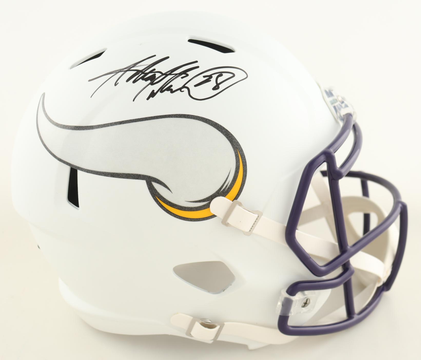 Riddell Minnesota Vikings Full-Size Speed replica helmet has been hand-signed by Adrian Peterson.