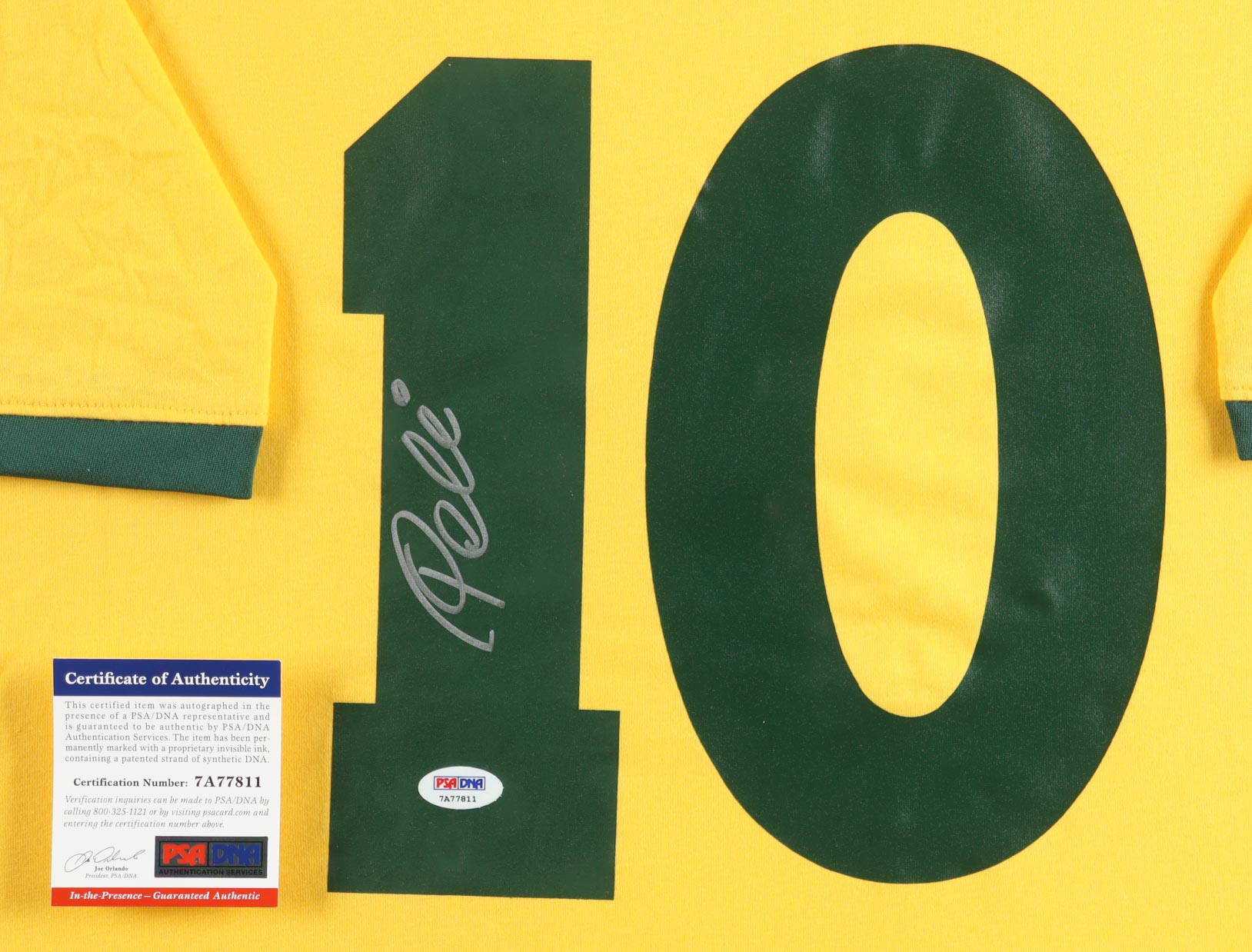 Pele Signed Custom Framed Jersey Display with World Cup Trophy Pin (PSA)