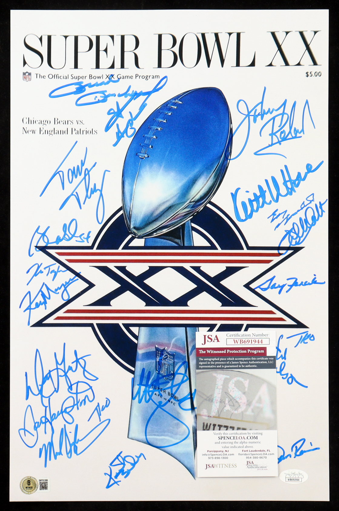 1985 Bears Super Bowl XX 11x17 Photo Team-Signed By (21) with Dan Hampton, Mike Singletary, Tom Thayer, Matt Suhey (Beckett & JSA)