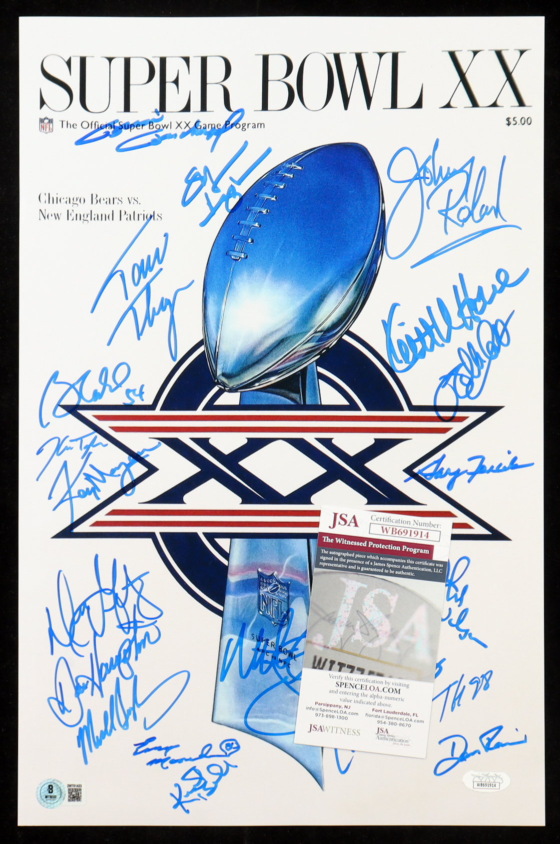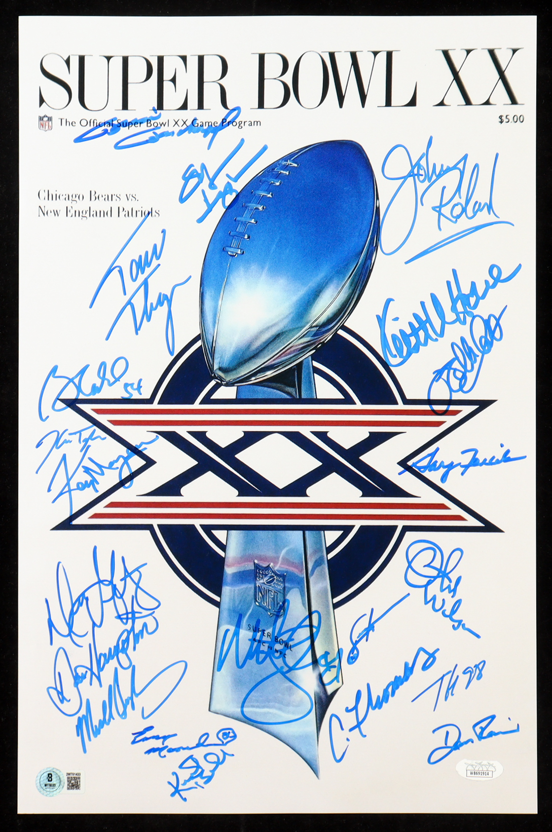 1985 Bears Super Bowl XX 11x17 Photo Team-Signed By (21) with Dan Hampton, Mike Singletary, Tom Thayer, Matt Suhey (Beckett & JSA)