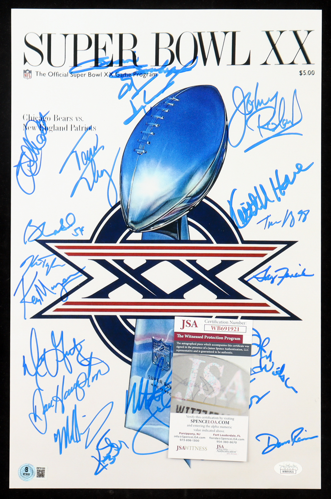 1985 Bears Super Bowl XX 11x17 Photo Team-Signed By (21) with Dan Hampton, Mike Singletary, Tom Thayer, Matt Suhey (Beckett & JSA)