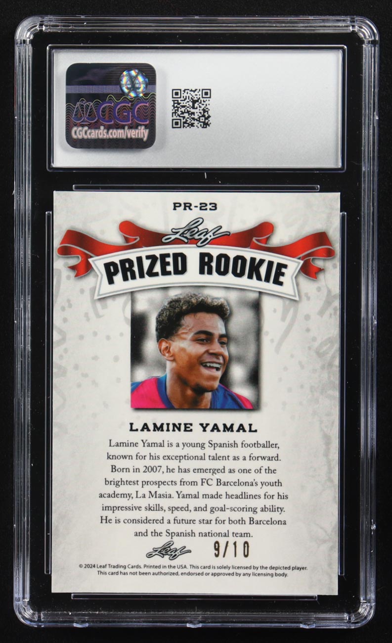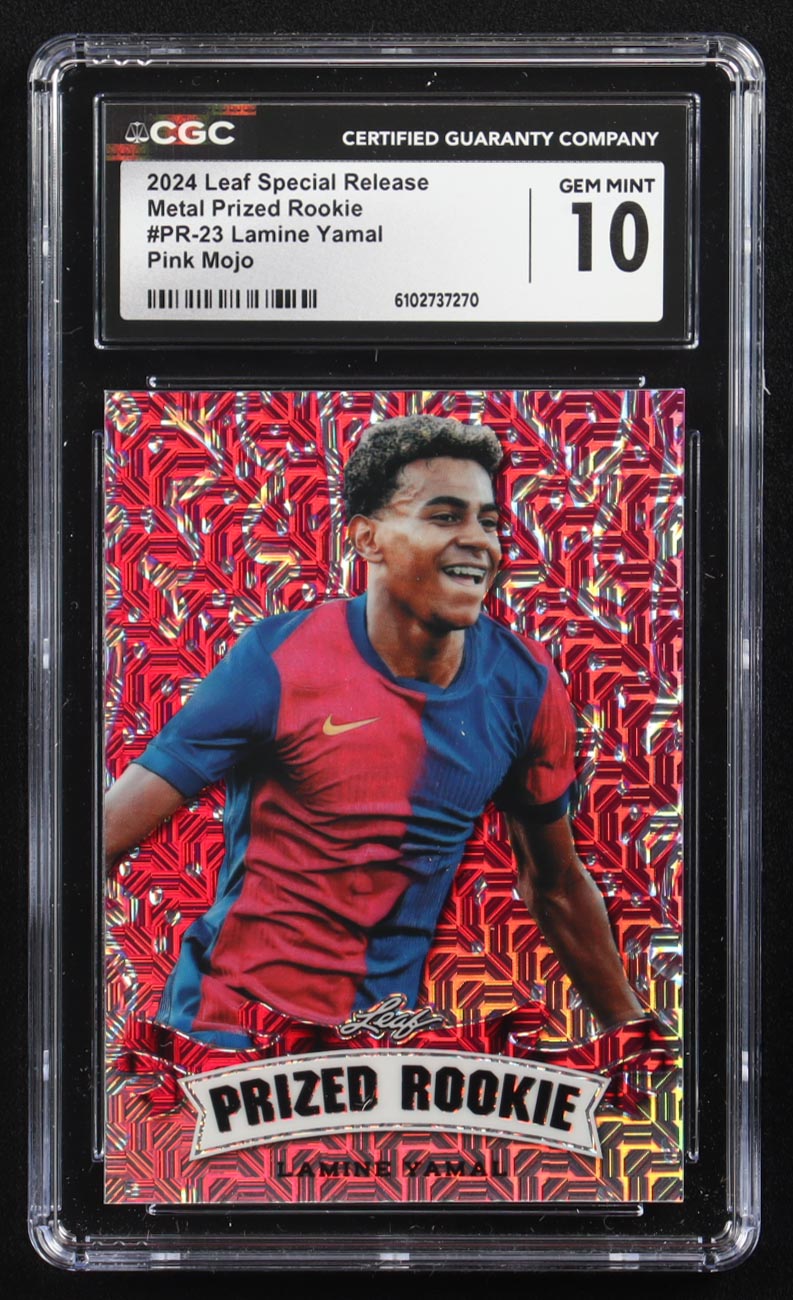 Lamine Yamal 2024 Leaf Special Release Metal Prized Rookie Pink Mojo #PR-23 RC #9/10 (CGC 10)