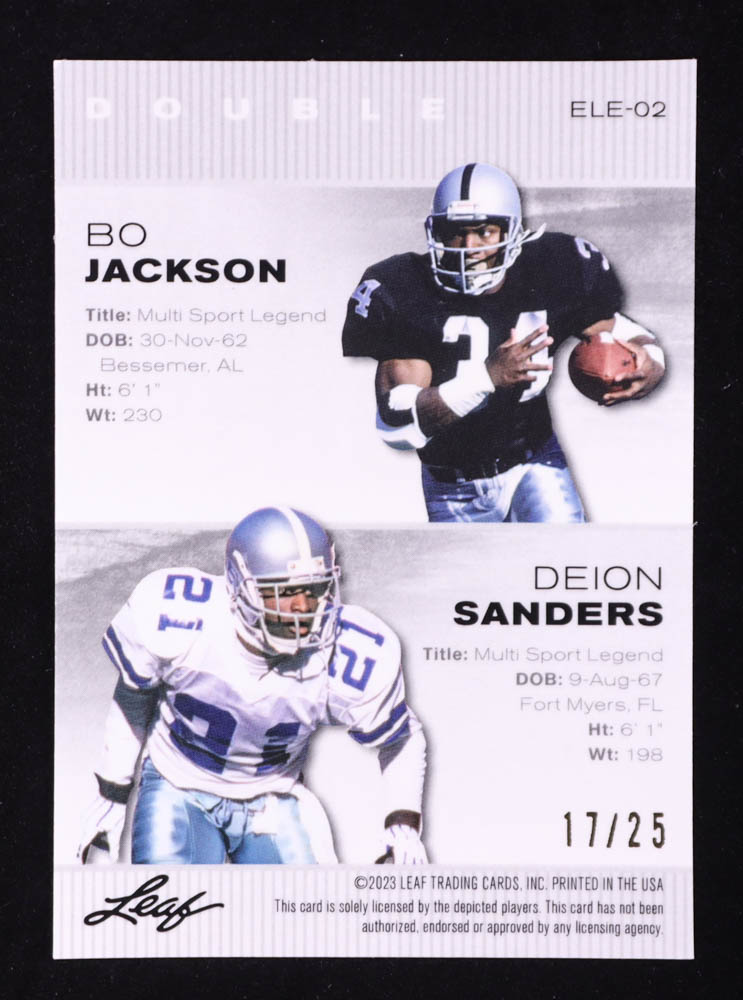Bo Jackson / Deion Sanders 2023 Leaf Special Release Double Legend Silver Pulsar #ELE02 #17/25