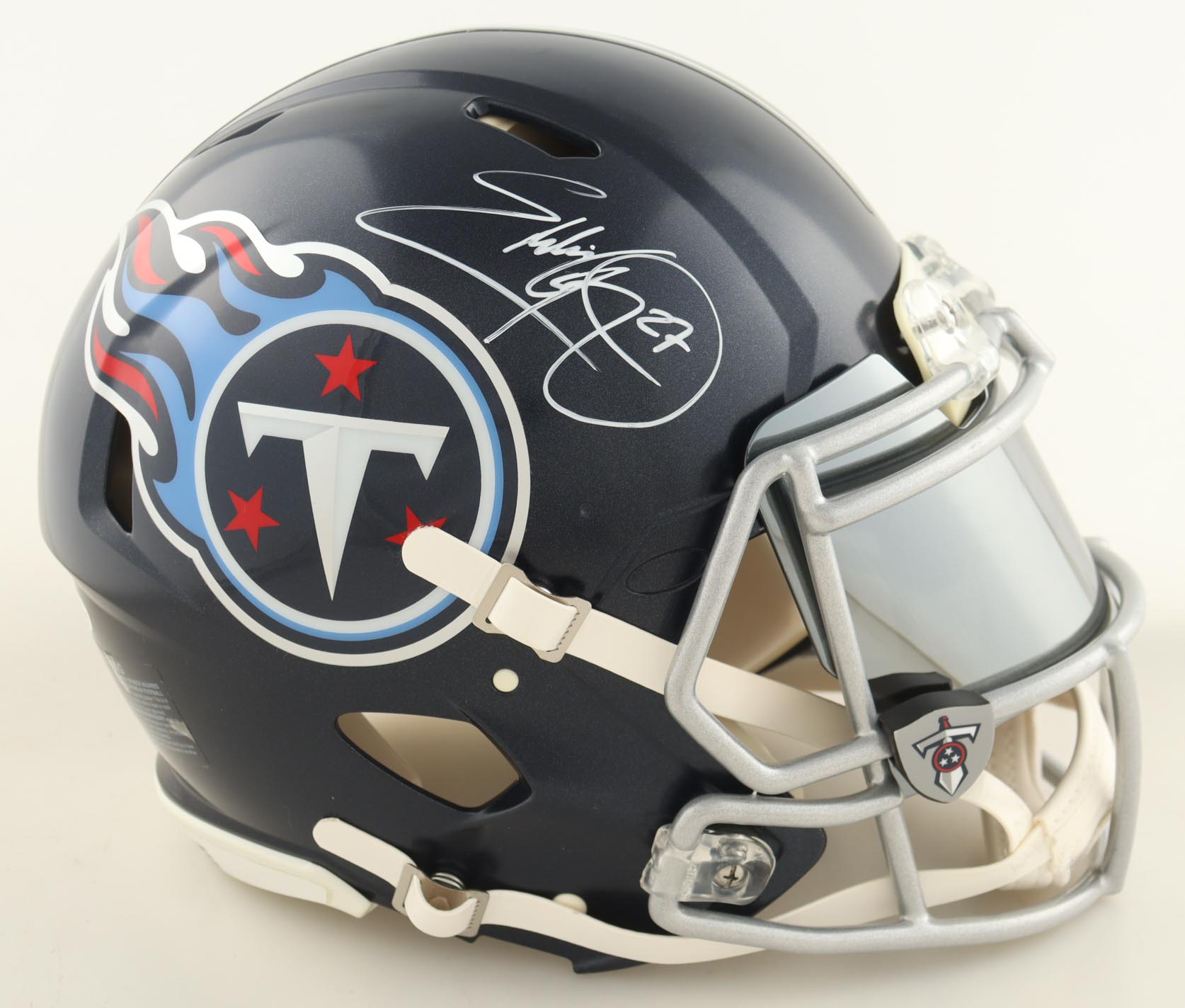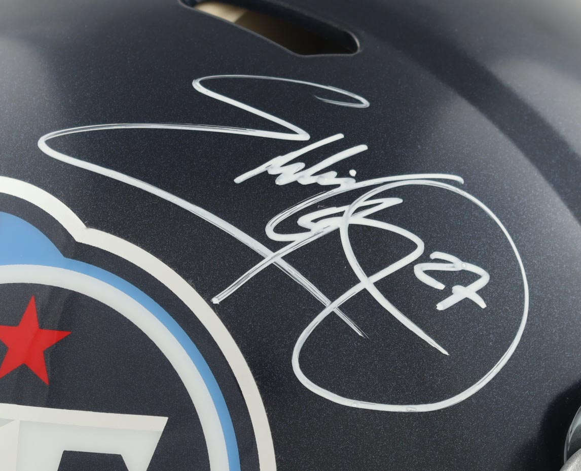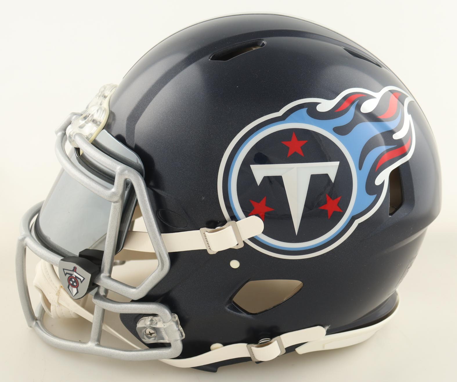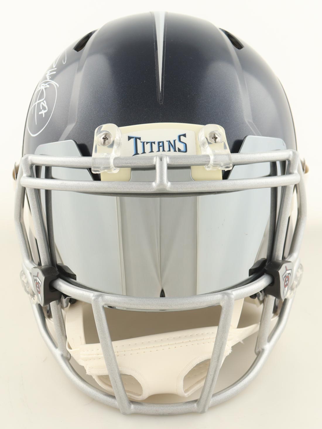 Riddell Tennessee Titans full-size authentic on-field speed helmet with a visor. Hand-signed by Eddie George.