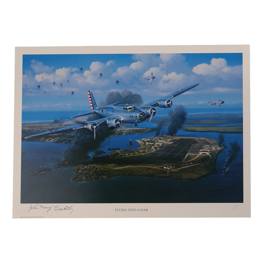 John "Davy" Crockett Signed Stan Stokes "Flying Into A War" Lithograph (AIV)