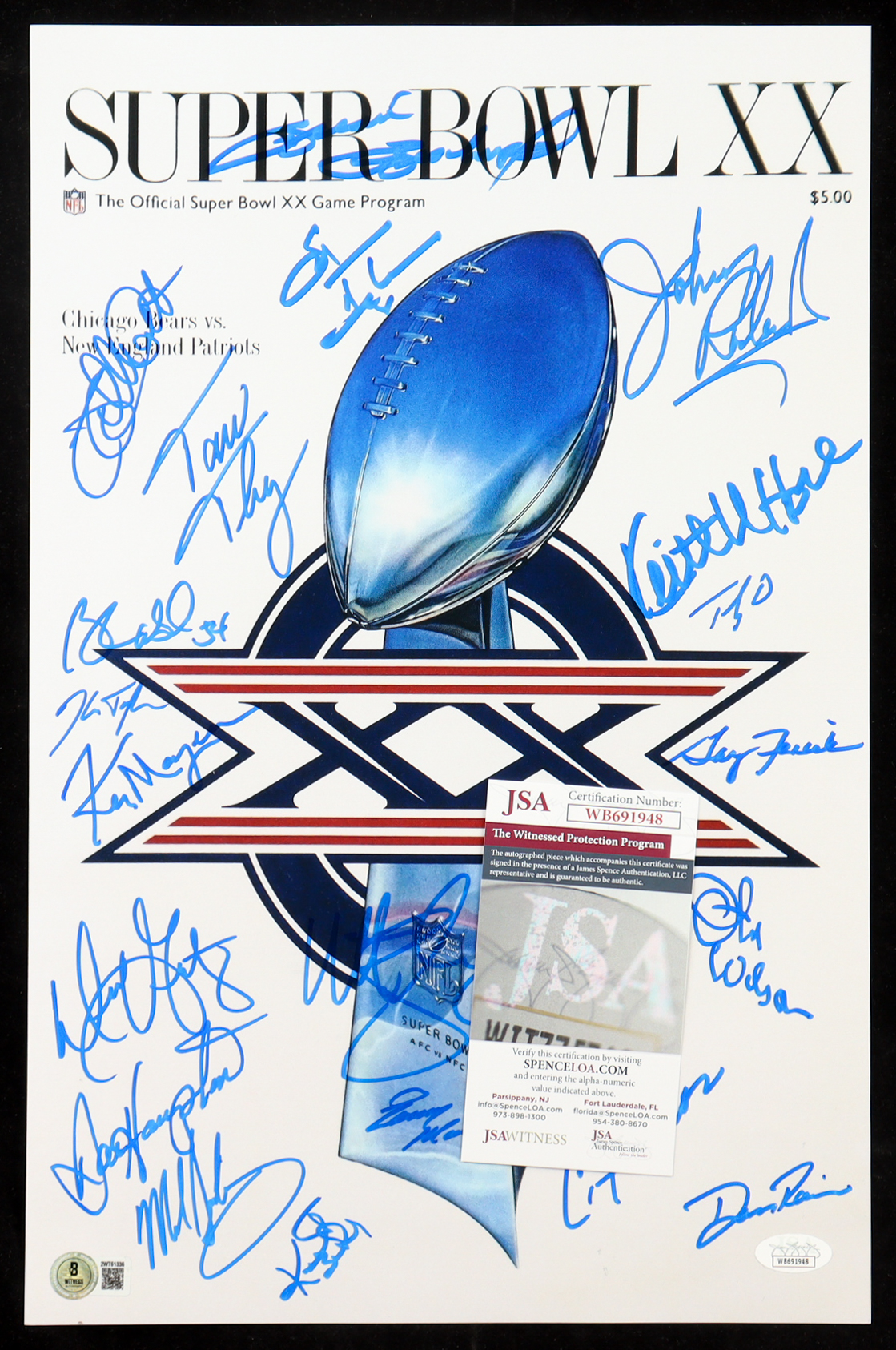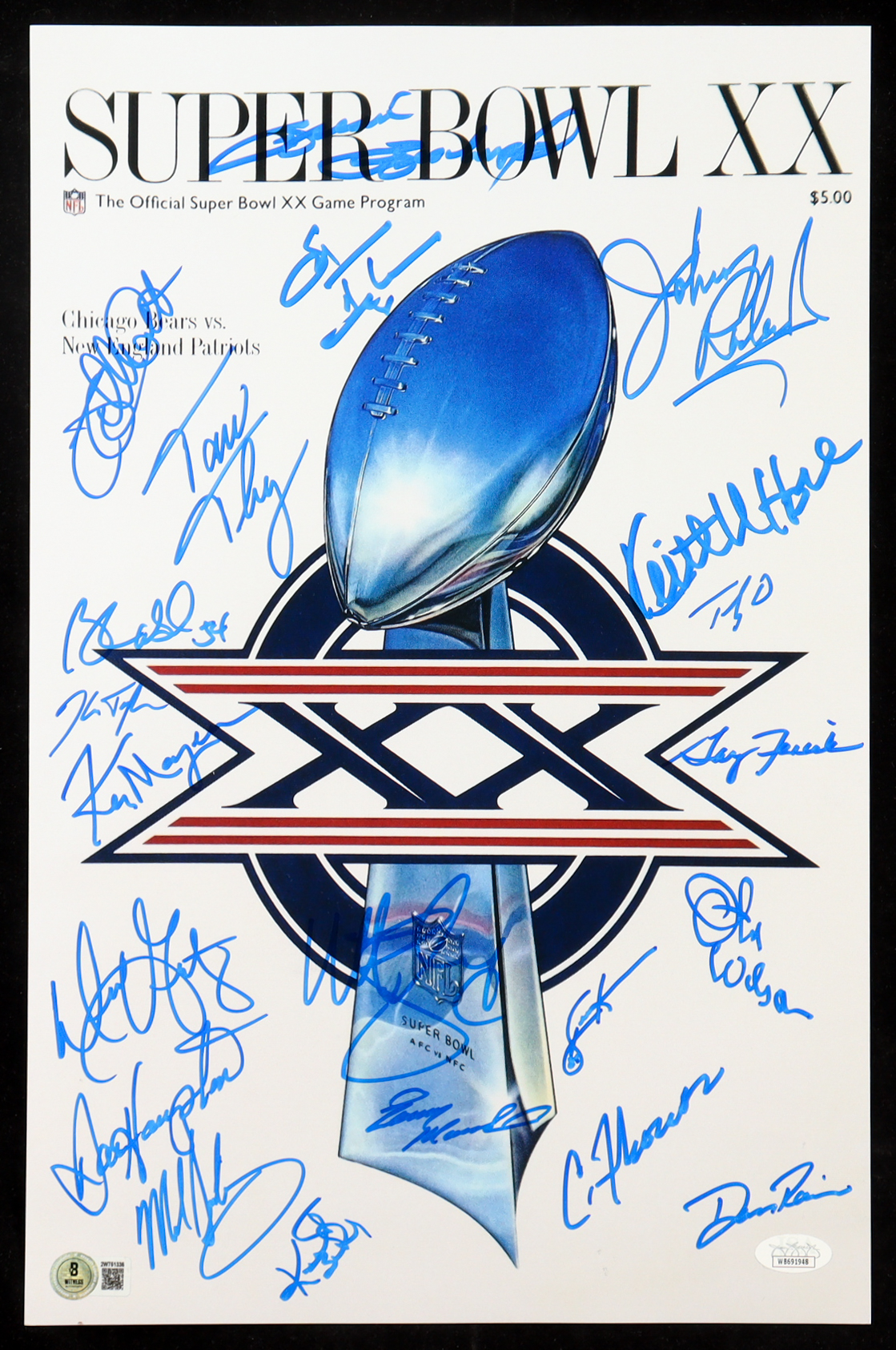 1985 Bears Super Bowl XX 11x17 Photo Team-Signed By (21) with Dan Hampton, Mike Singletary, Tom Thayer, Matt Suhey (Beckett & JSA)