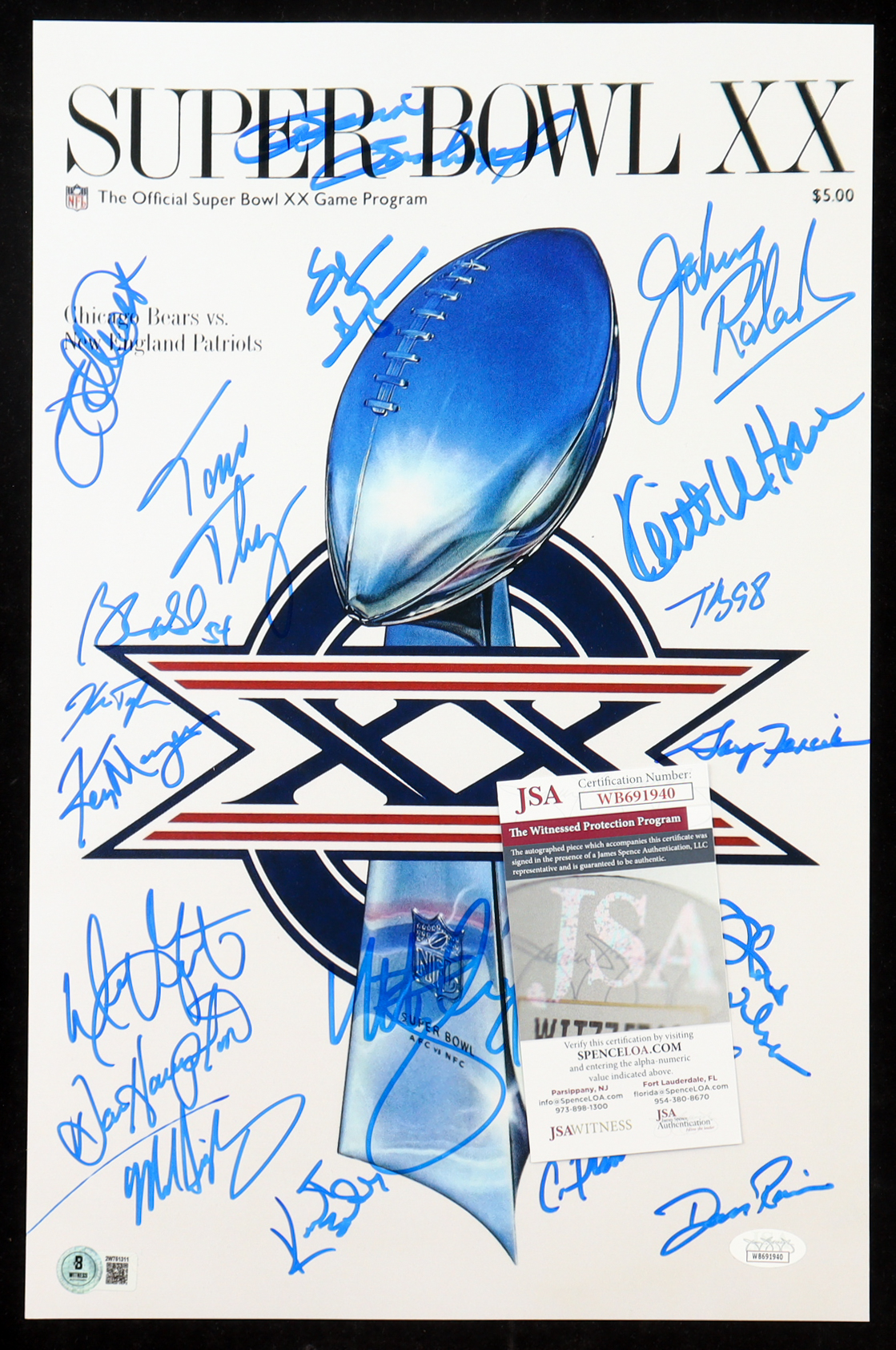 1985 Bears Super Bowl XX 11x17 Photo Team-Signed By (21) with Dan Hampton, Mike Singletary, Tom Thayer, Matt Suhey (Beckett & JSA)