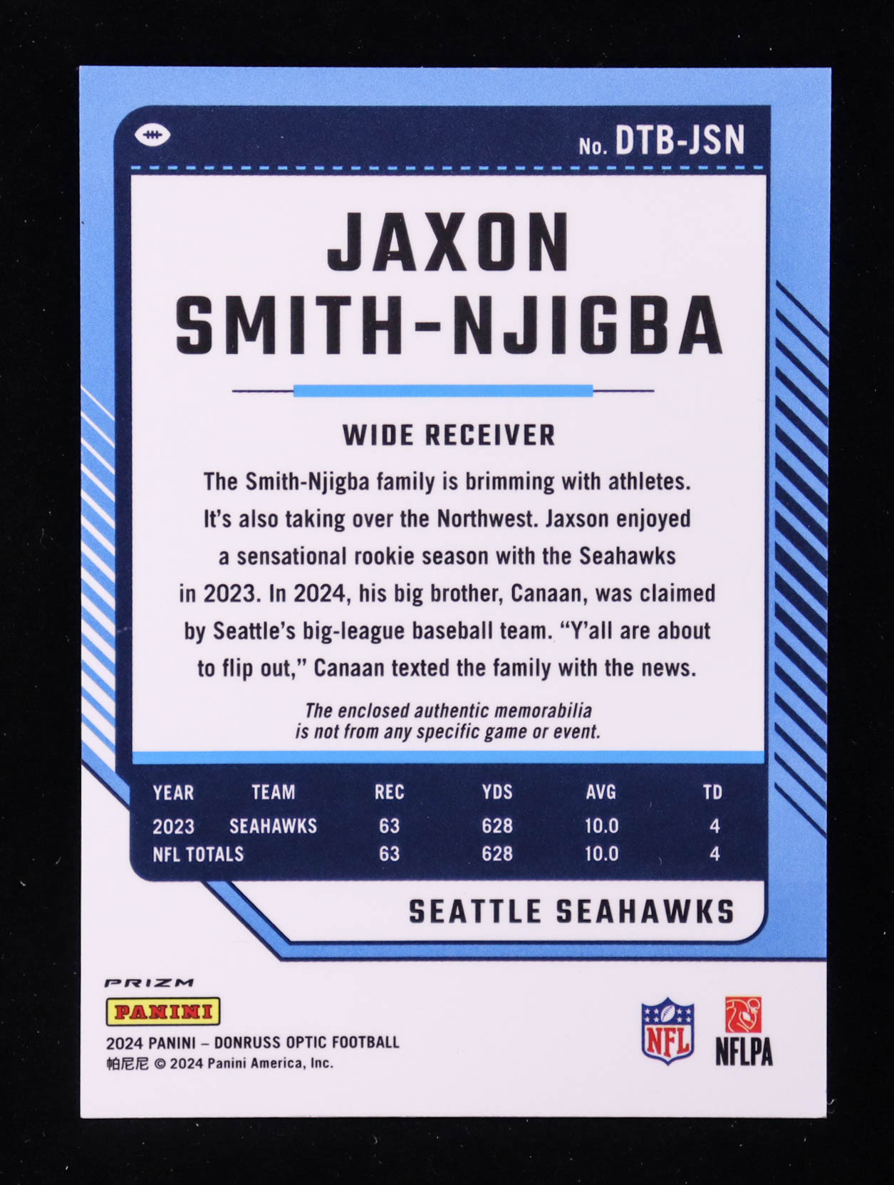 Jaxon Smith-Njigba 2024 Donruss Optic Donruss Threads Blue Hyper #10