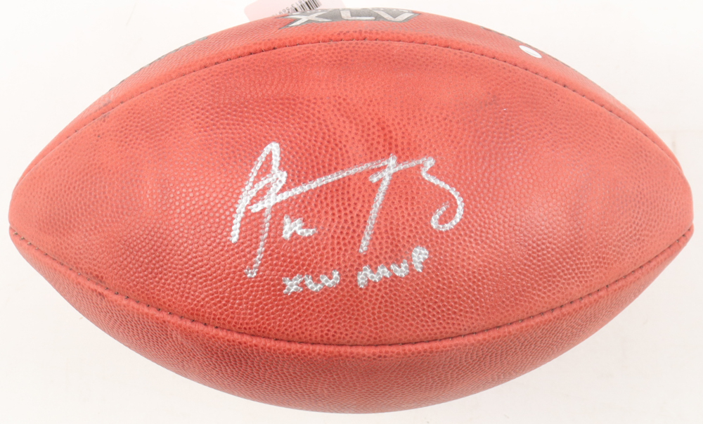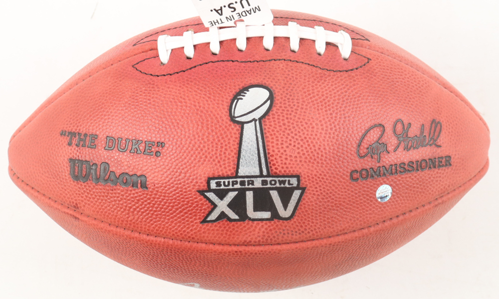 Wilson "The Duke" Super Bowl XLV Logo NFL official game football has been hand-signed and inscribed by Aaron Rodgers (Green Bay Packers).