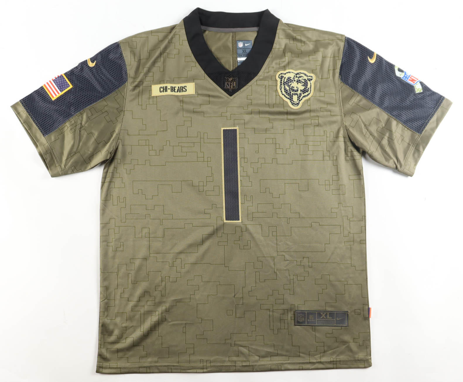 Nike jersey with everything sewn on, size XL. Hand signed by Justin Fields (Chicago Bears).