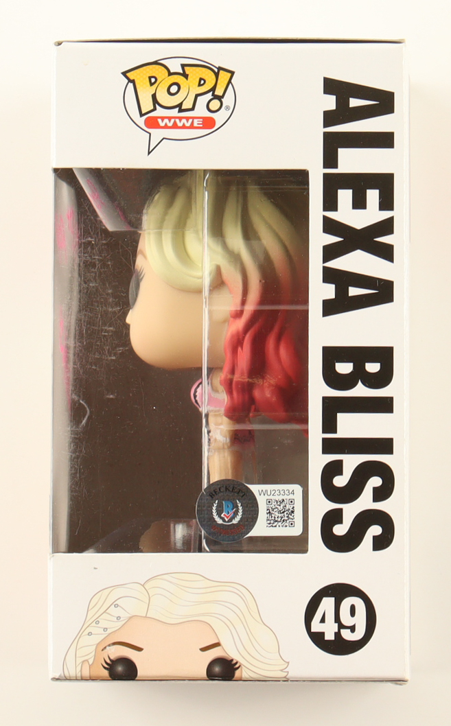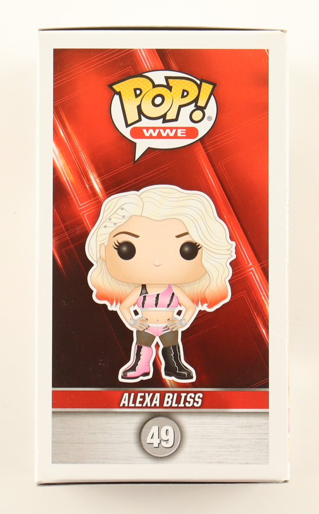 Funko Pop! vinyl figure measures approximately 4" in height and has been hand-signed and inscribed on the packaging by Alexa Bliss. Please note, the edges of the box are creased.