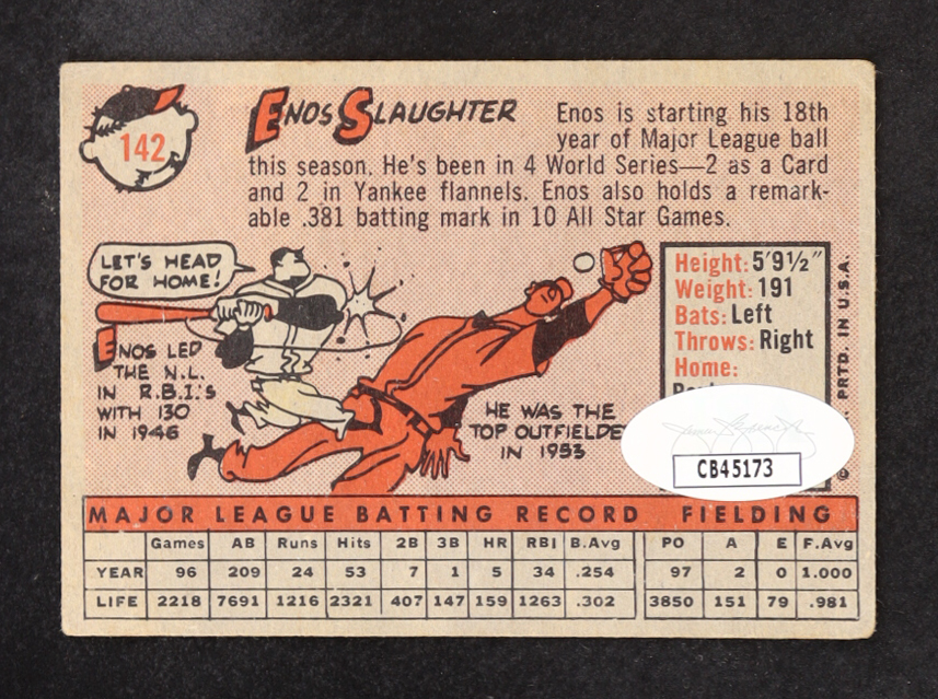 Enos Slaughter Signed 1958 Topps #142 (JSA)