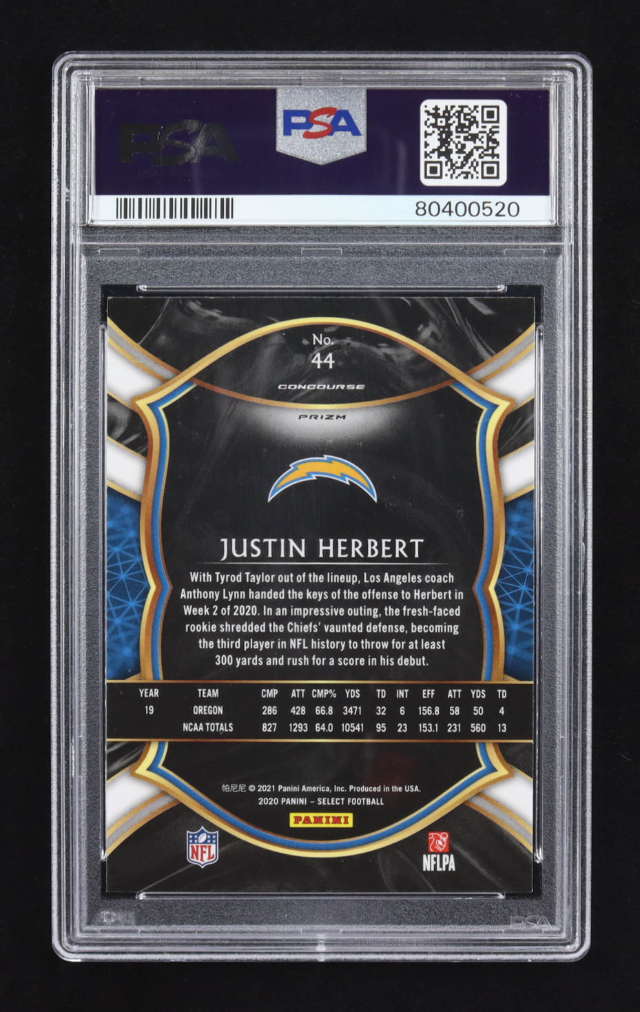 Justin Herbert 2020 Panini Select Silver Prizm #44 RC (PSA 10)