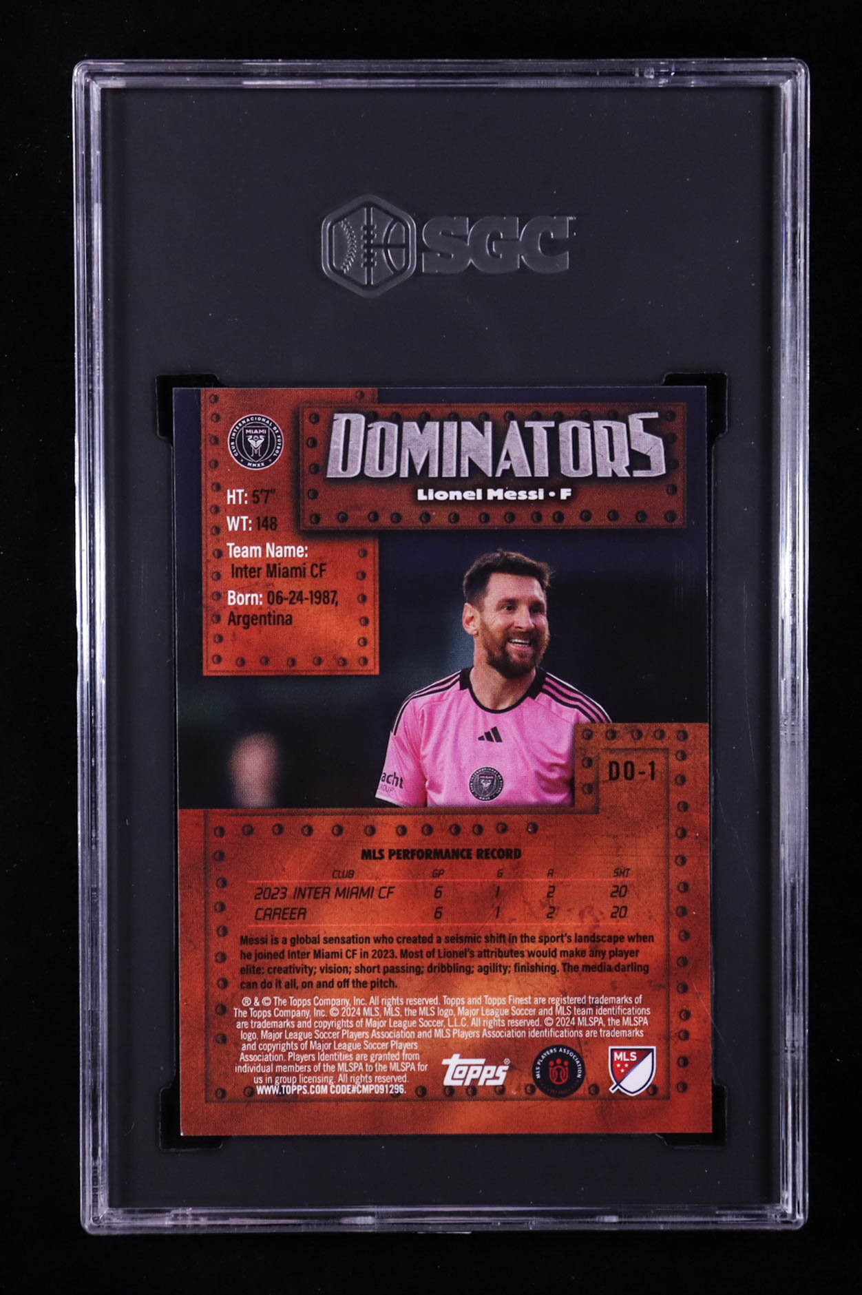 Lionel Messi 2024 Finest MLS Finest Dominators #DO1 (SGC 9.5)