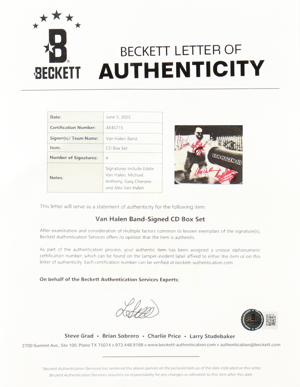 Eddie Van Halen, Michael Anthony, Gary Cherone, & Alex Van Halen Signed LE "Van Halen 3" CD Box Set (Beckett)