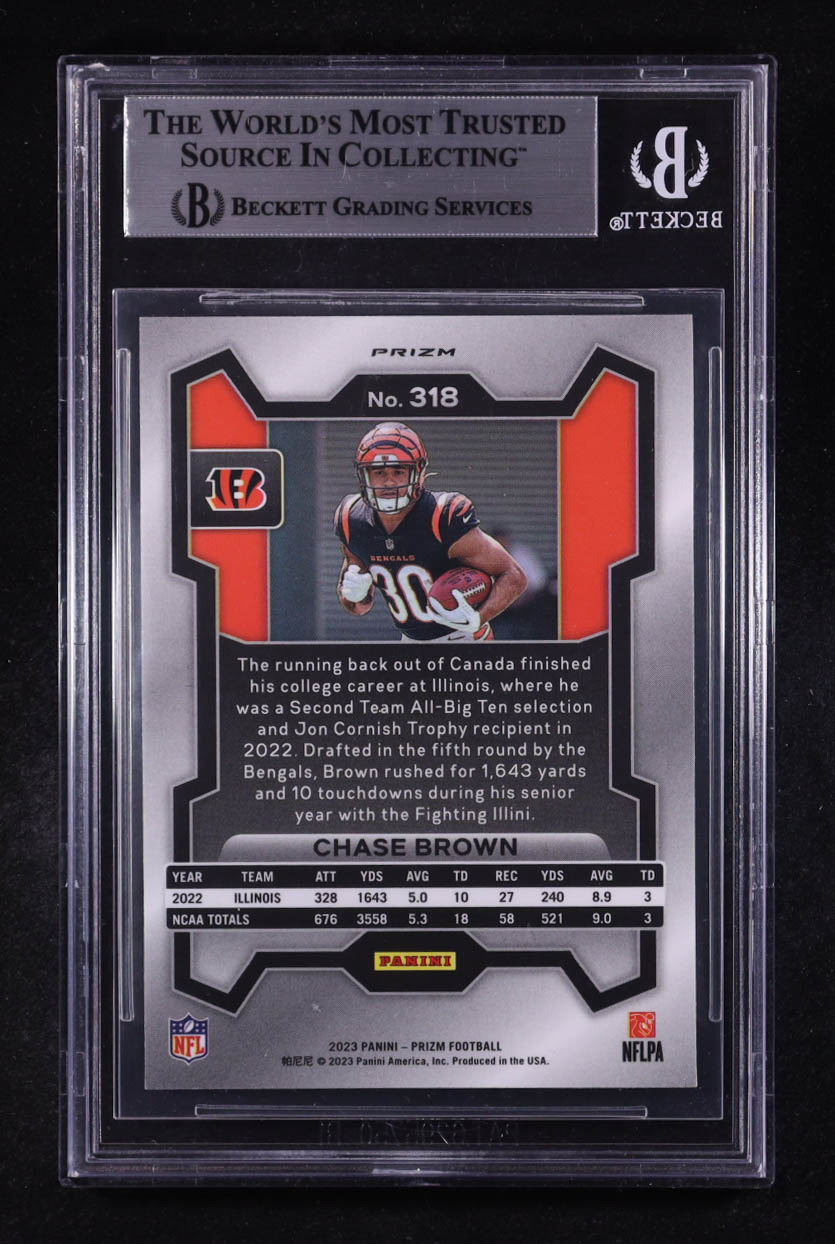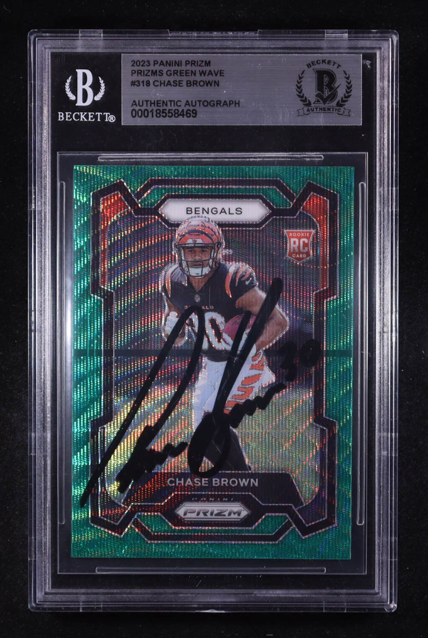 Chase Brown Signed 2023 Panini Prizm Prizms Green Wave #318 (BGS)