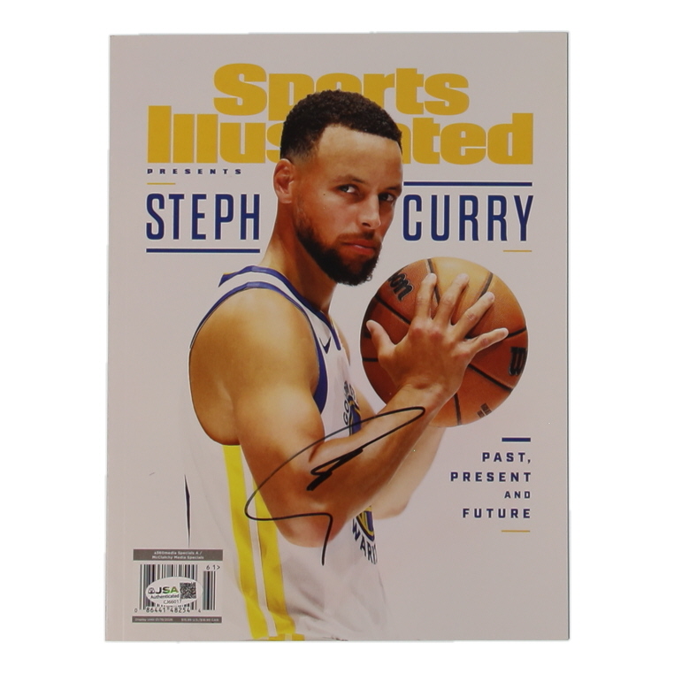 Magazine has been hand-signed on the cover by Steph Curry (Golden State Warriors).