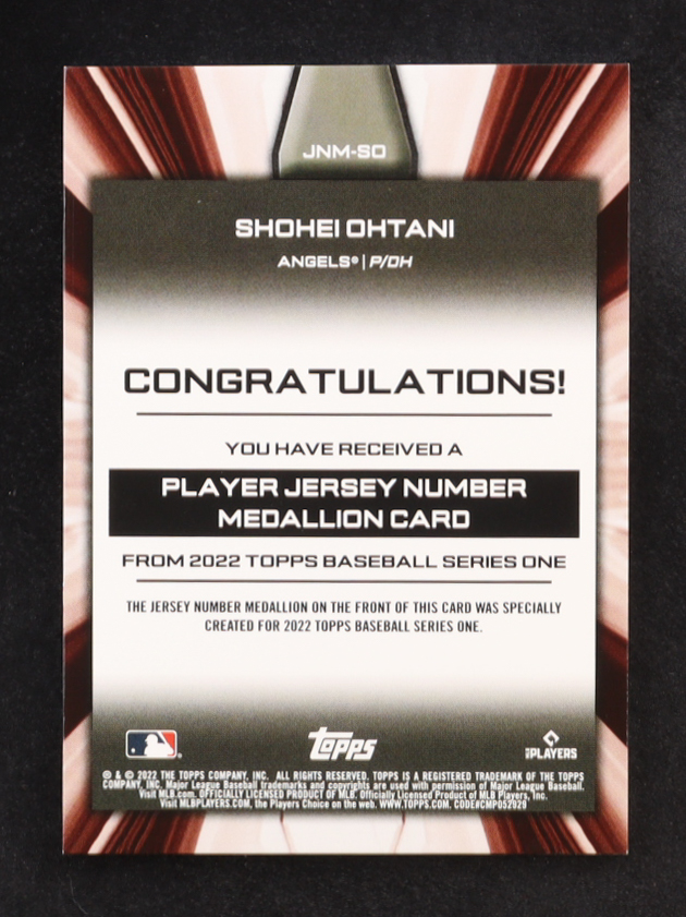 Shohei Ohtani 2022 Topps Commemorative Player Jersey Number Medallions #JNMSO