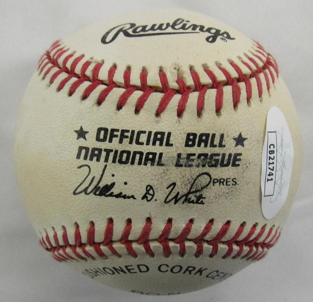 Rawlings Official National League Baseball. Hand-signed by Stan Musial (D. 2013, St. Louis Cardinals, HOF). Please note, the baseball is naturally toned.