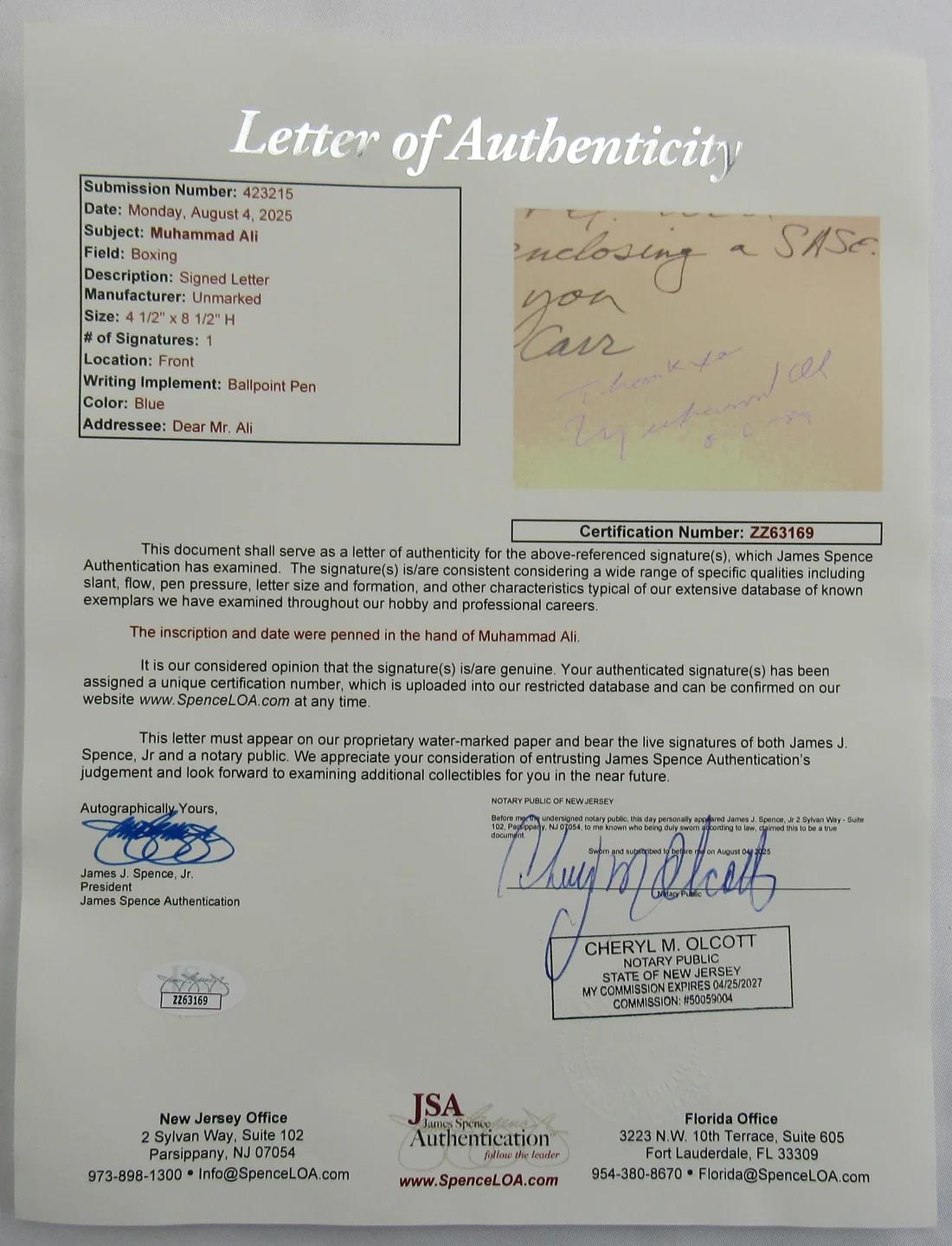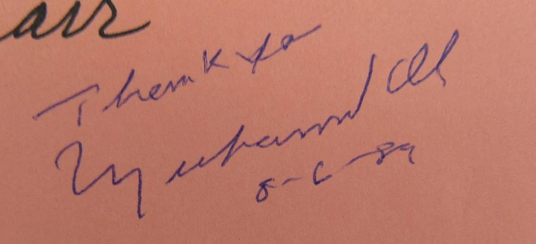 Muhammad Ali Signed 4.5x8.5 Cut Inscribed "Thank You 8-6-89" (JSA)