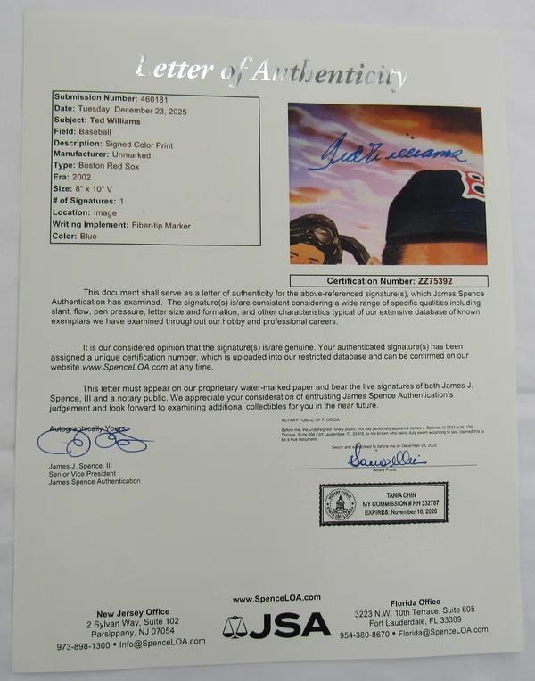Ted Williams Signed Red Sox 8x10 Photo (JSA)