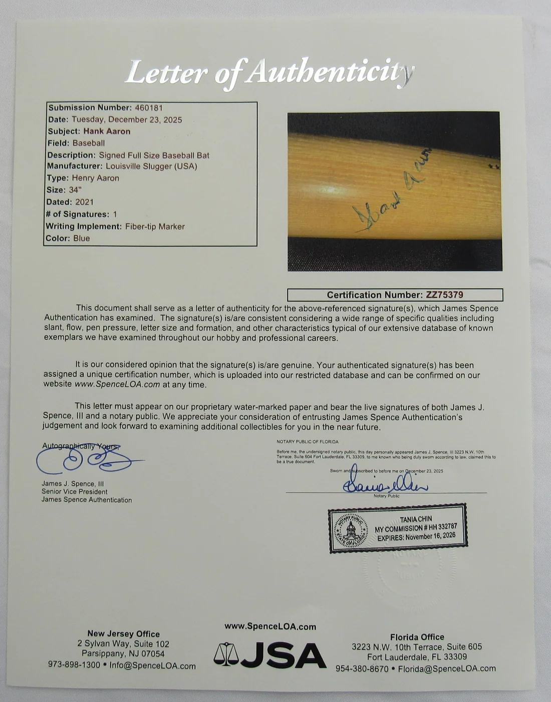 Hank Aaron Signed Rawlings Baseball Bat (JSA)