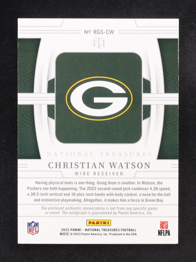 Christian Watson 2022 Panini National Treasures Rookie NFL Gear Signature Combos #19 #46/99 RC